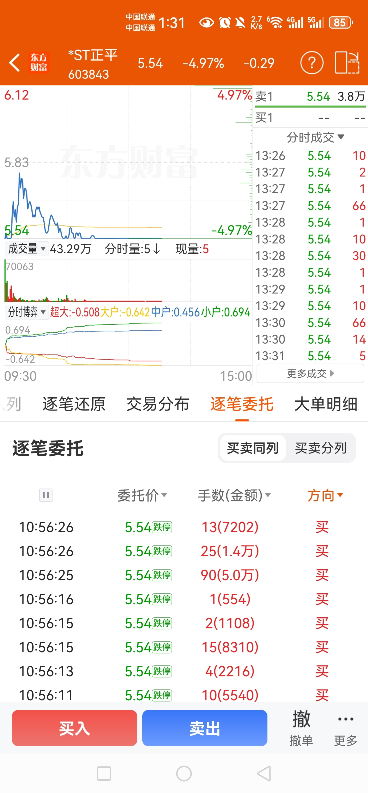 超级level2,出问题了呀。为什么逐笔笔买入的单子,只能看到10:56的了。