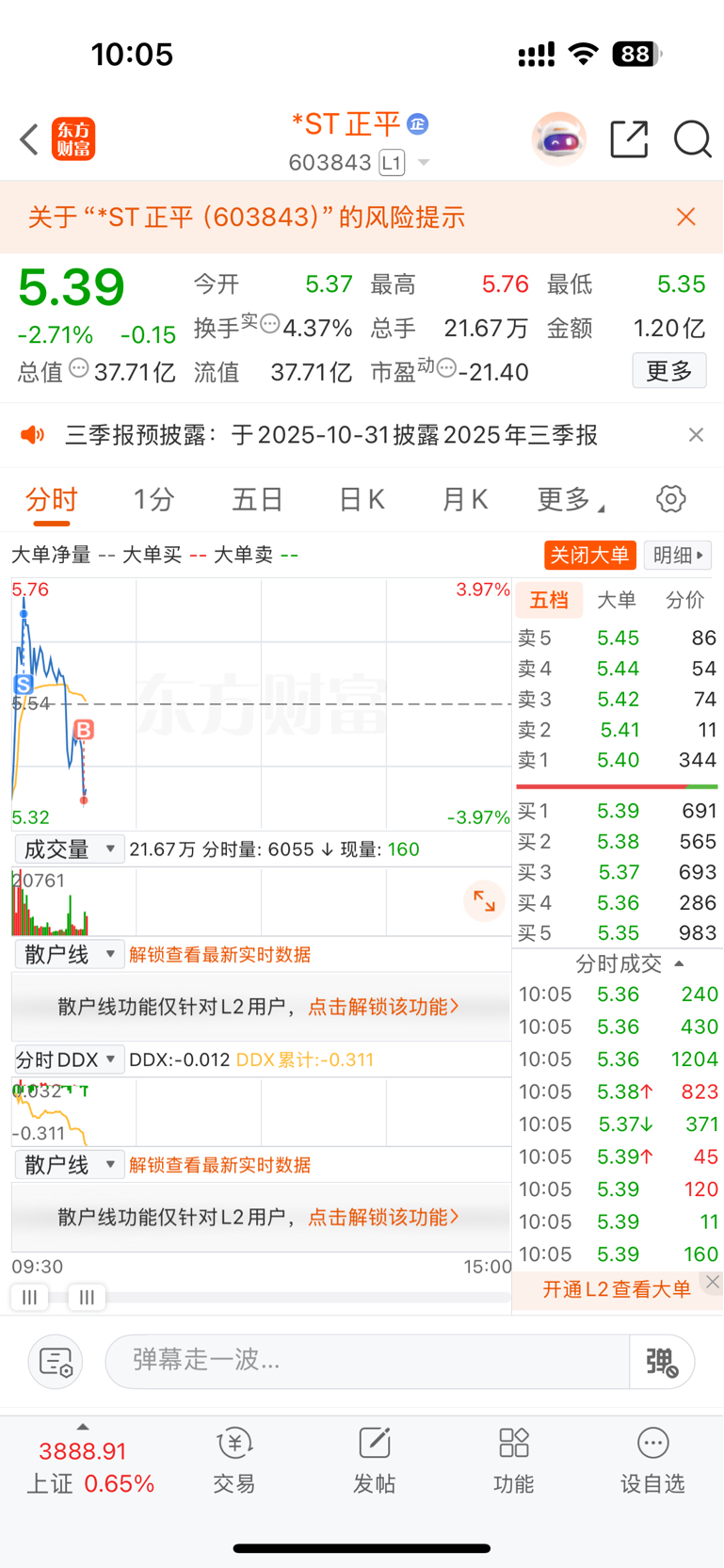 $*ST正平(SH603843)$ 做了个T外面太危险了,这里再亏也亏不了多少