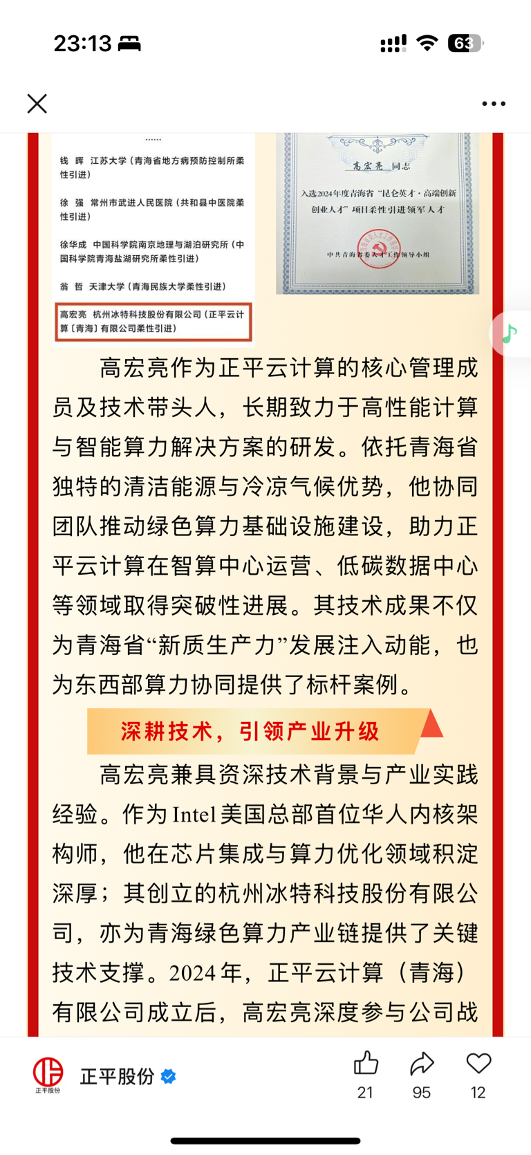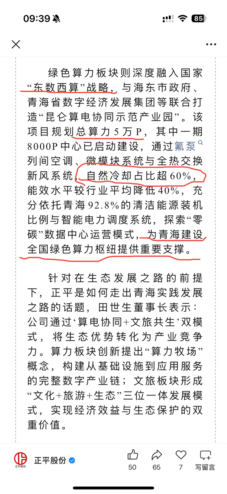 $*ST正平(SH603843)$ 人民日报头版头条报道青海算力(图1),青海算力枢纽由正平承建(图2),宇顺购买的算力只配给正平提鞋(图3)。正平的算力自己已经建好(图5、6),自己拥有核心技术(图6)。请问正平该不该超过宇顺的41元?