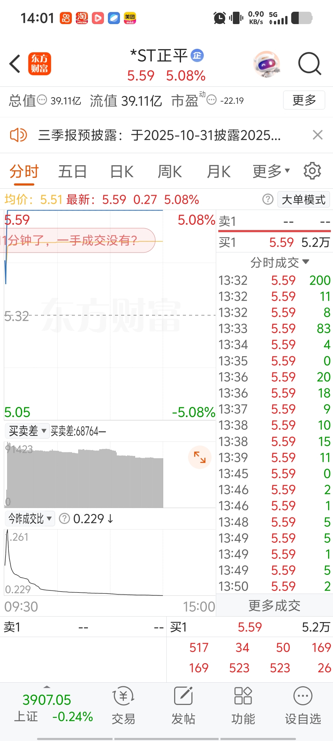 $*ST正平(SH603843)$ 35分成交0手,45分成交0手,到现在十几分钟一手没有,别排队了,赶紧撤了吧