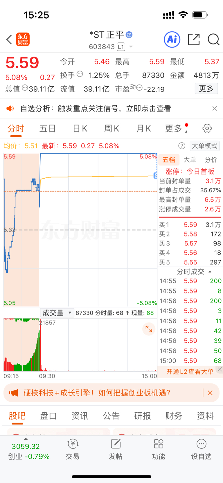 $*ST正平(SH603843)$ 我赚钱了,啥时候走都是对的