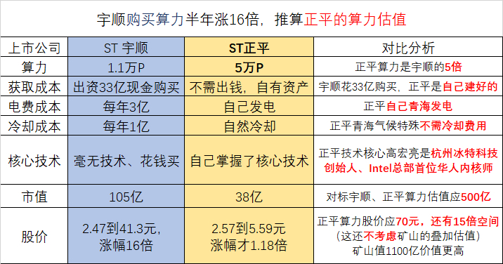 看看(表格)正平的算力是宇顺的5倍,成本比宇顺低太多,宇顺100亿市值、正平该不该值500亿市值?