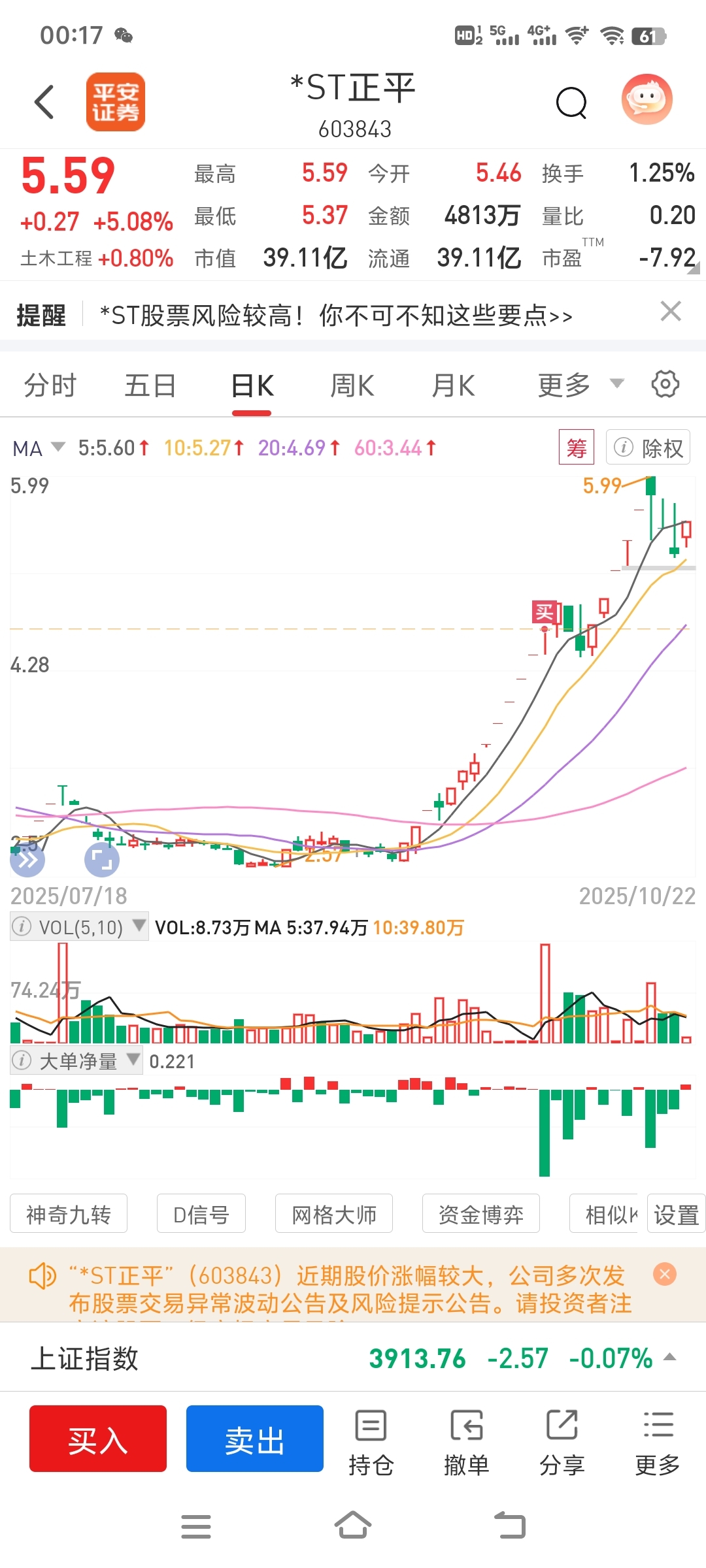 $*ST正平(SH603843)$ 一股都不会卖,随便那些空√乱叫,也不做T,因为不知道什么时候就卖飞了