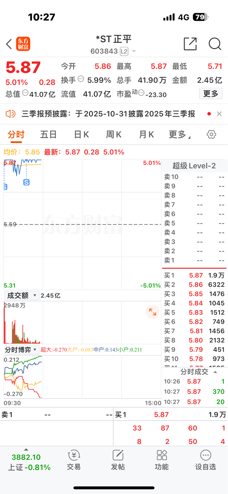 $*ST正平(SH603843)$ 落袋为安,谢谢主力
