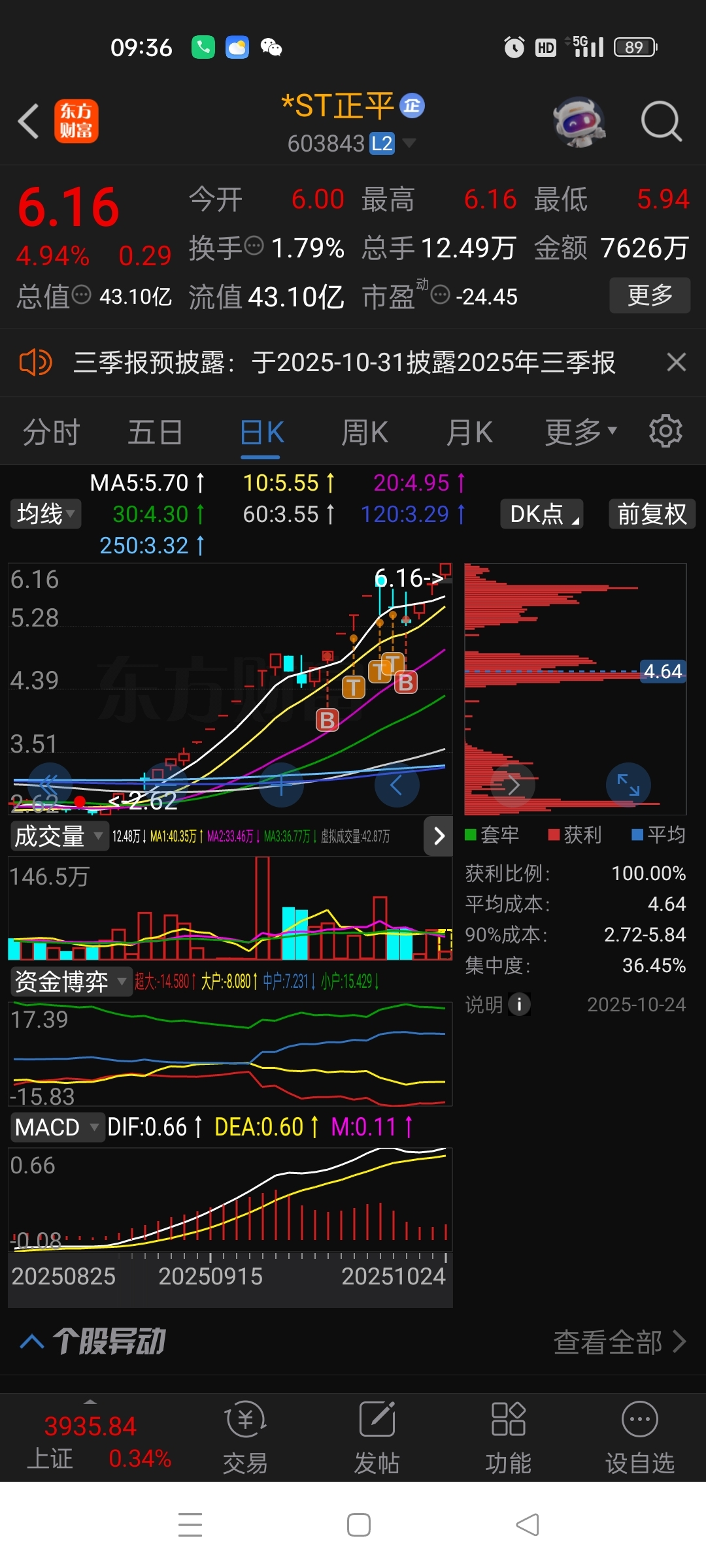 $*ST正平(SH603843)$ 事后看,进来的还算及时