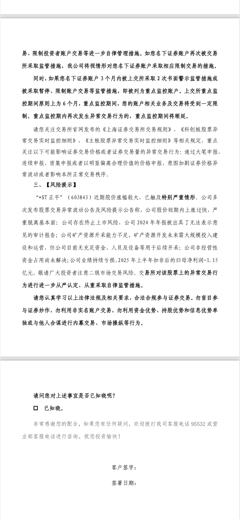 $*ST正平(SH603843)$ 用了一个新账户梭哈50万股 5000手只买进2400手 直接警告了