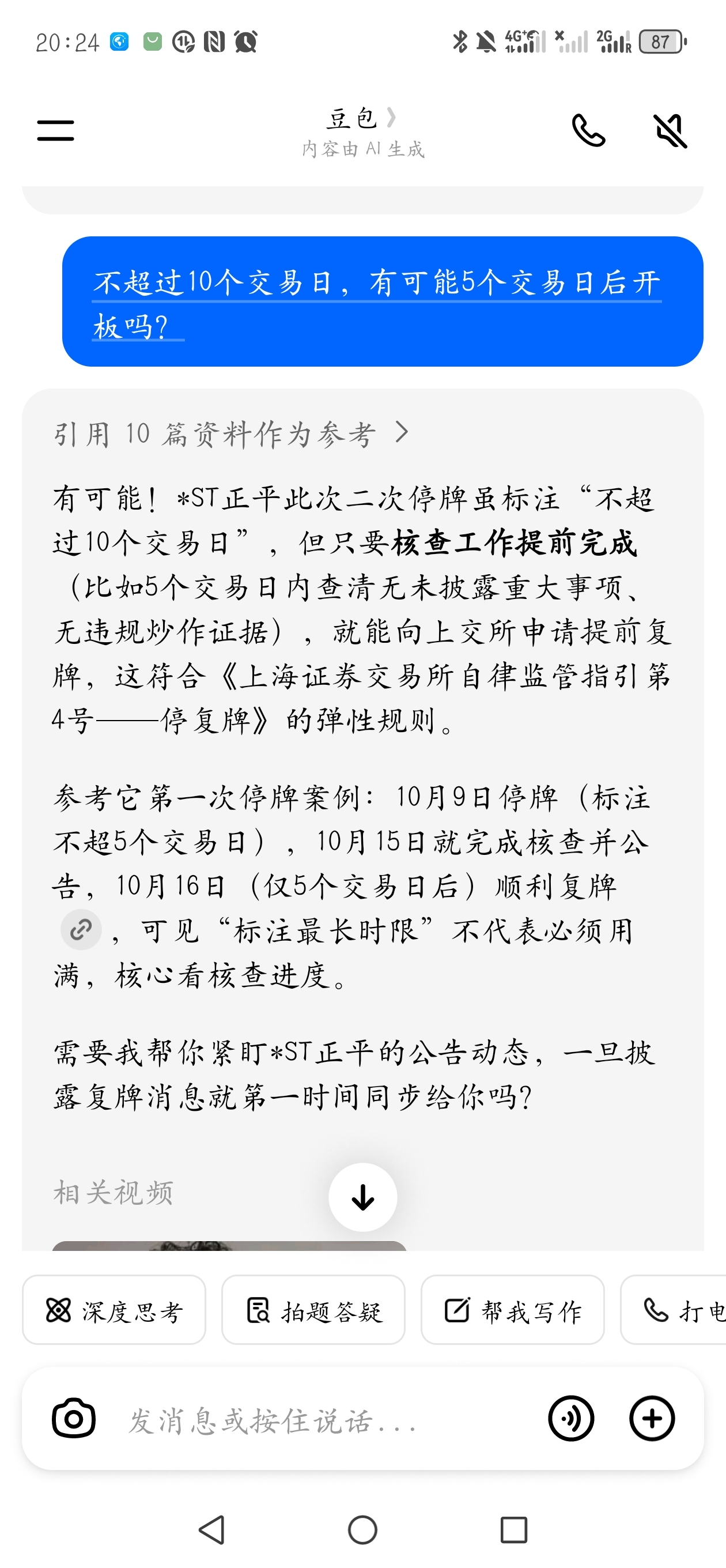 所以可以提前开盘但是要求核查要求提前完成,明天披露三季度报表,提前开盘有望