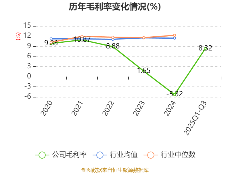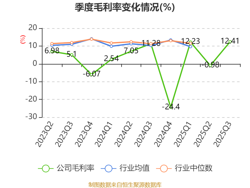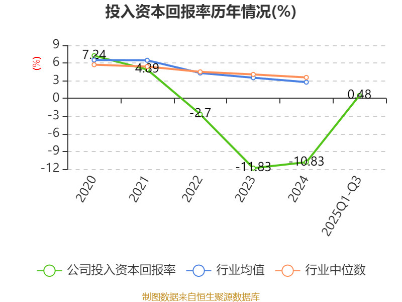 盈利能力方面, 2025年前三季度公司加权平均净资产收益率为-13.26%,同比下降4.03个百分点。公司2025年前三季度投入资本回报率为0.48%,较上年同期上升0.29个百分点。