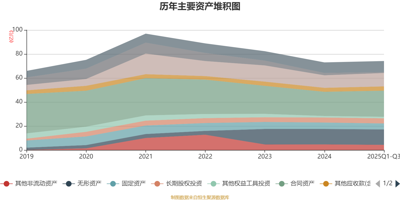 资产重大变化方面,截至2025年三季度末,公司货币资金较上年末减少63.32%,占公司总资产比重下降1.73个百分点;合同资产较上年末增加7.87%,占公司总资产比重上升1.71个百分点;应收票据及应收账款较上年末增加7.16%,占公司总资产比重上升0.78个百分点;预付款项较上年末增加100.16%,占公司总资产比重上升0.65个百分点。