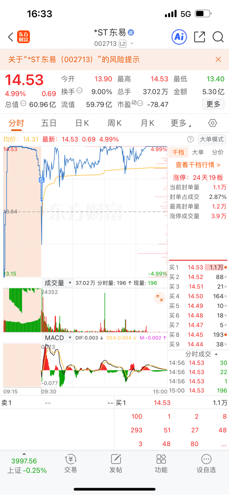 今天清仓东易了,留出资金下周三大干正平,希望家人们给个机会,我要的不多2万股就行