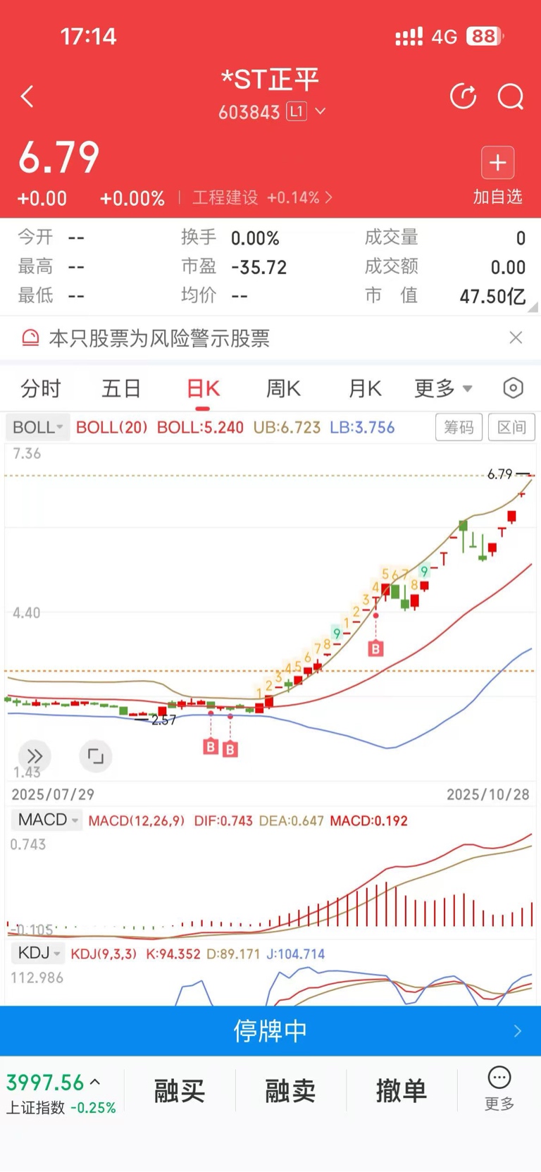 $*ST正平(SH603843)$ 我正平盈利100%,盈利回吐完要多少个跌停板?