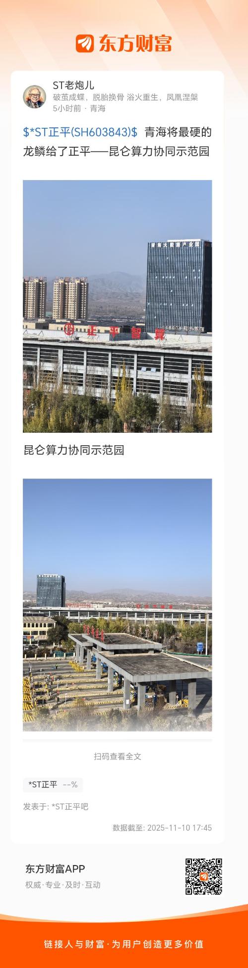 $*ST正平(SH603843)$ 青海将最硬的龙鳞给了正平——昆仑算力协同示范园