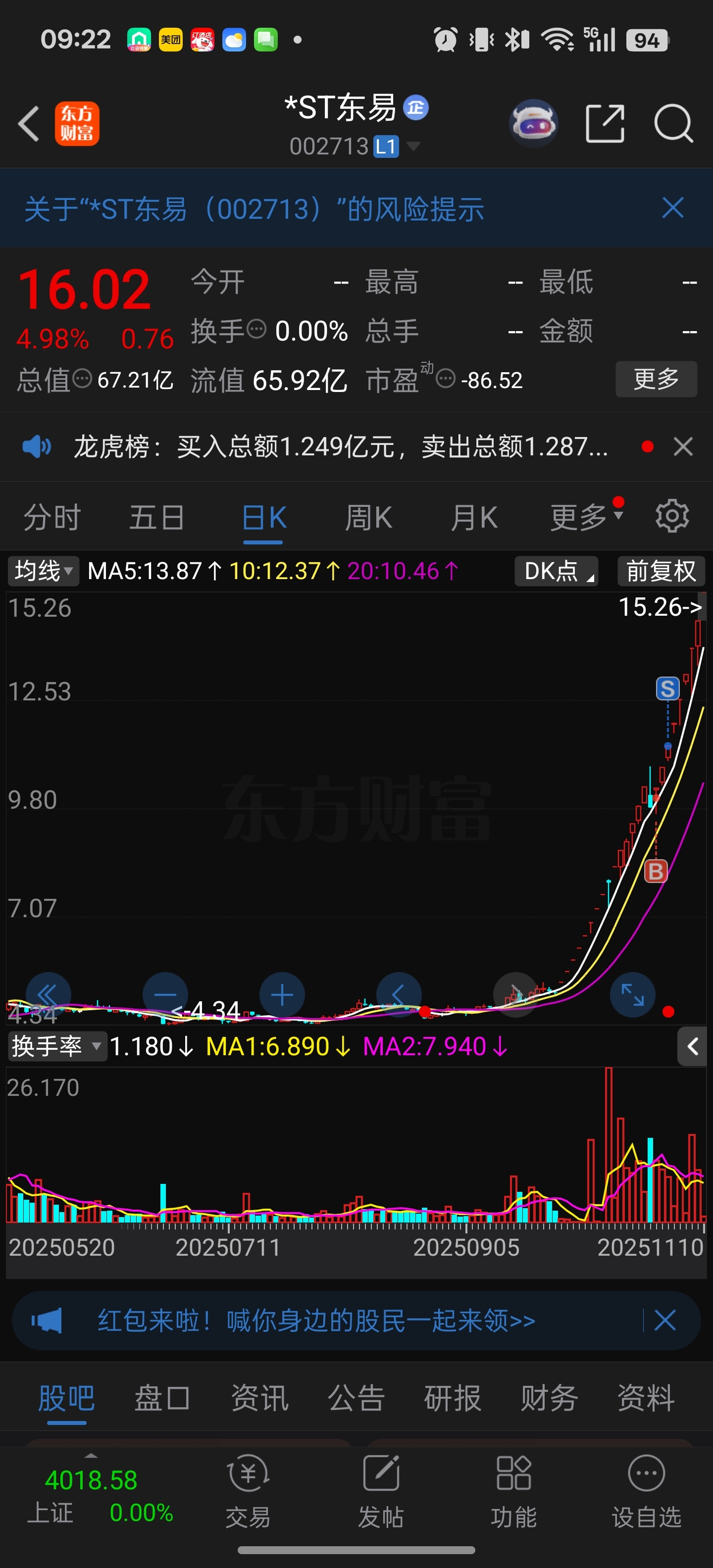 $*ST正平(SH603843)$ 东哥是真牛逼,可惜卖飞了,希望平头哥不会让我失望