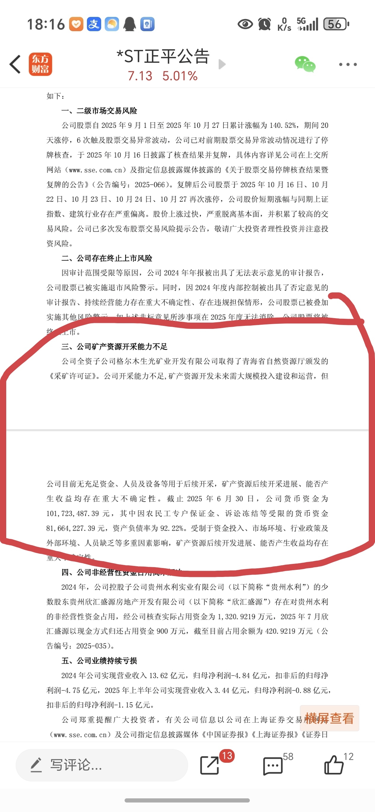 $*ST正平(SH603843)$ 这一条没有了,起飞啊