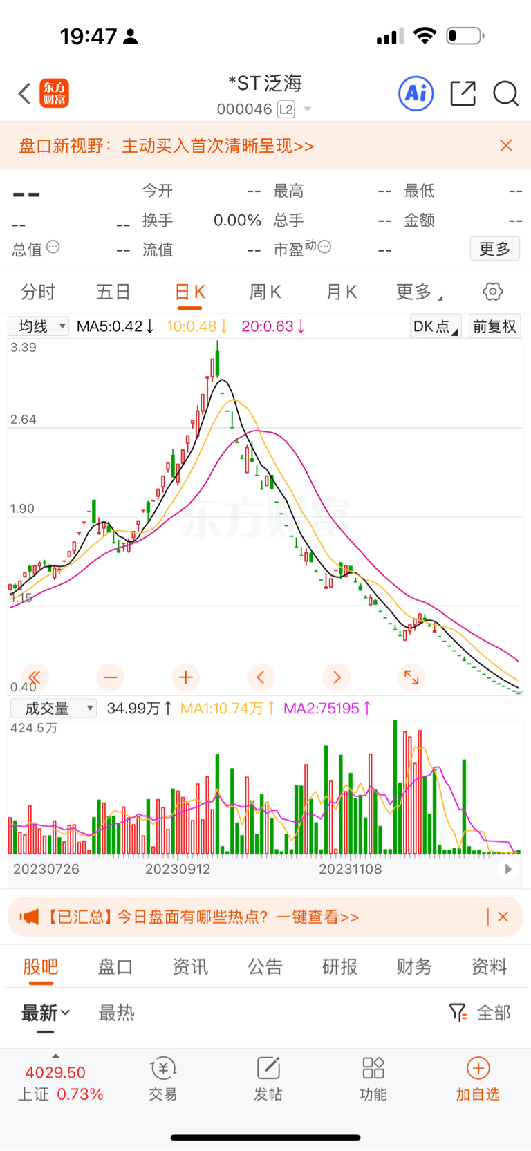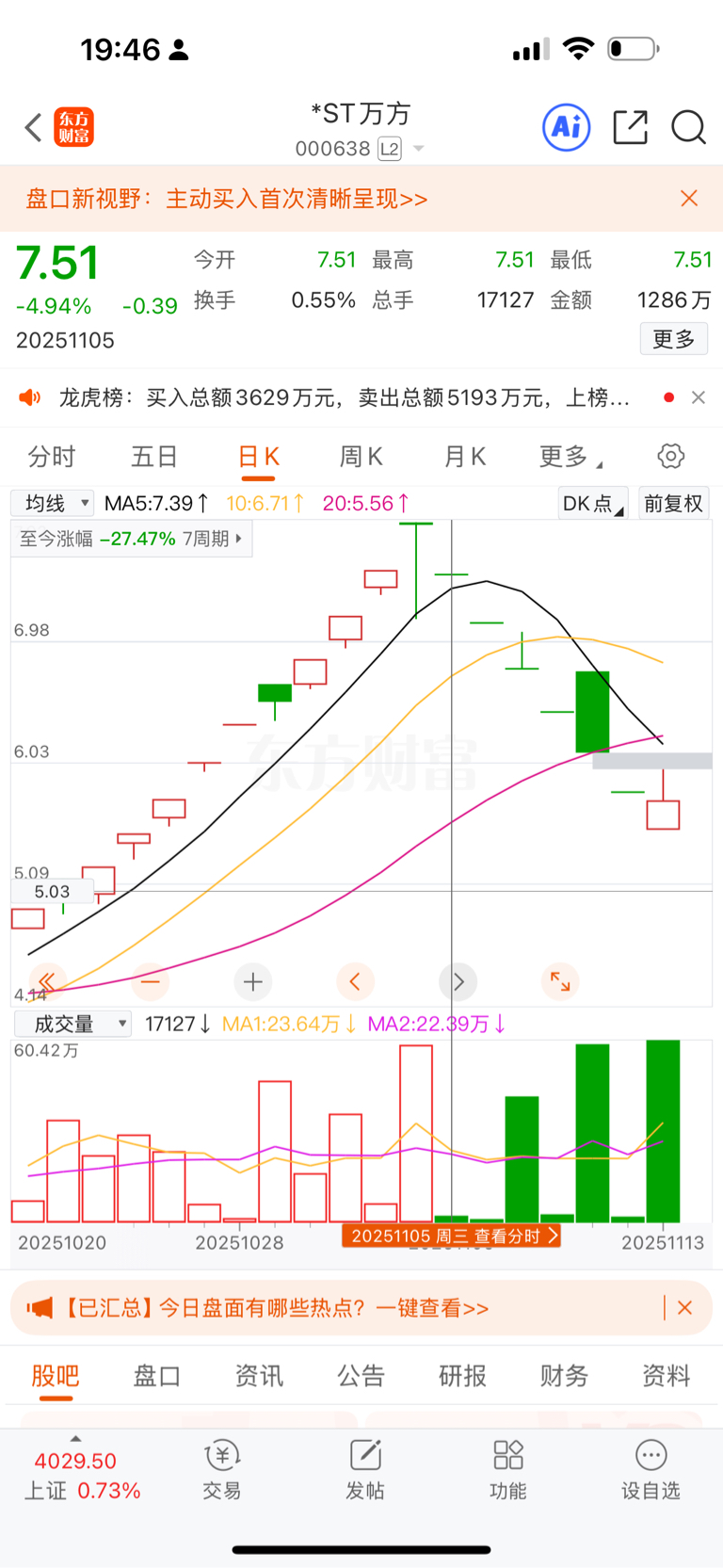 正平有点像当初的泛海!也是出了退市风险之后就一直跌,万方前段时间出了一个退市风险