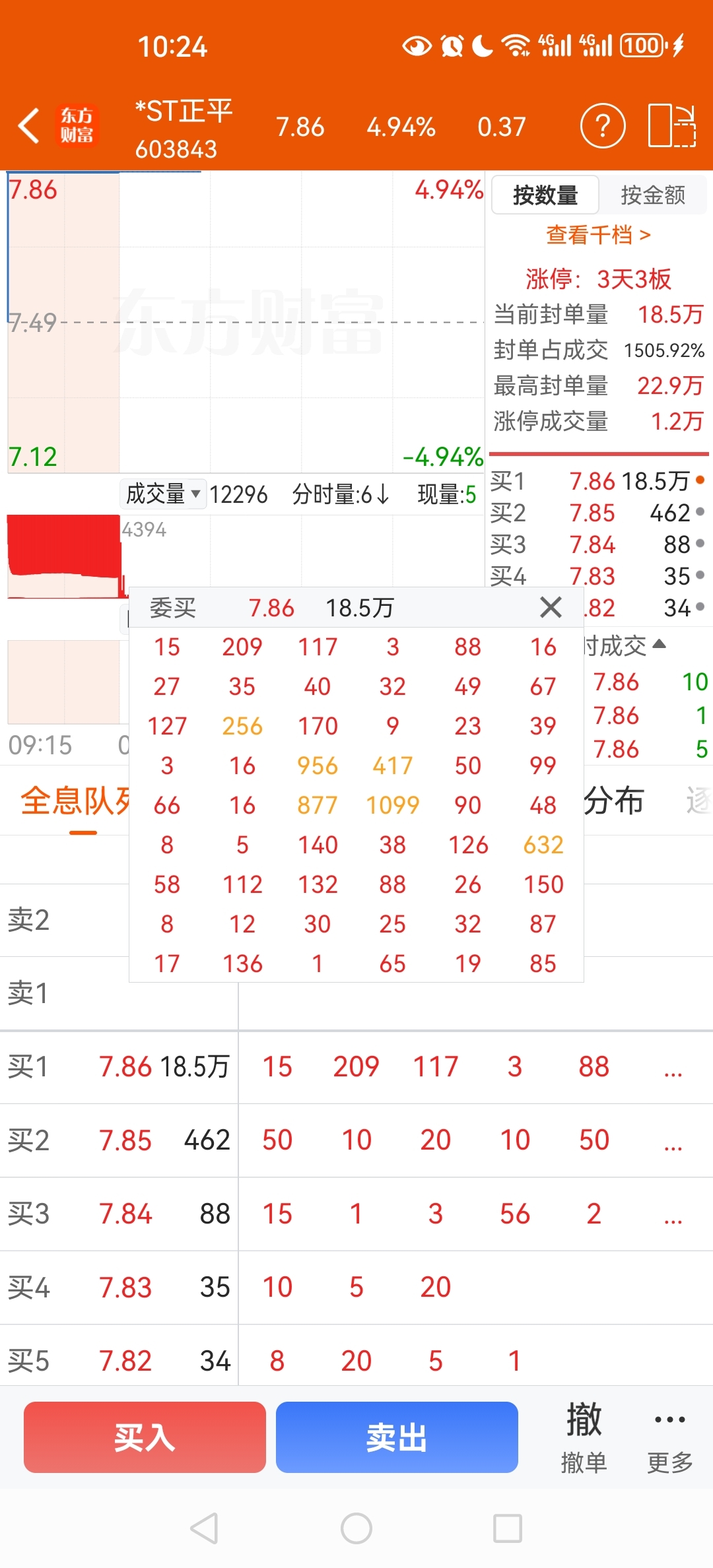 $*ST正平(SH603843)$ 目前第一页排单。
