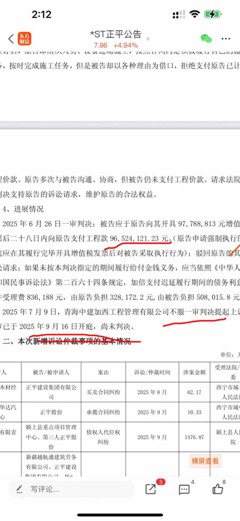 $*ST正平(SH603843)$ 原告公司诉讼一审胜诉,二审9月己开庭。而且公司己申请法院强制执行!二审胜诉机会很大可收回资金9千多万元。三季度公告一个债务豁免2千多万。这二笔收回是不是今年报不亏损机会很大?