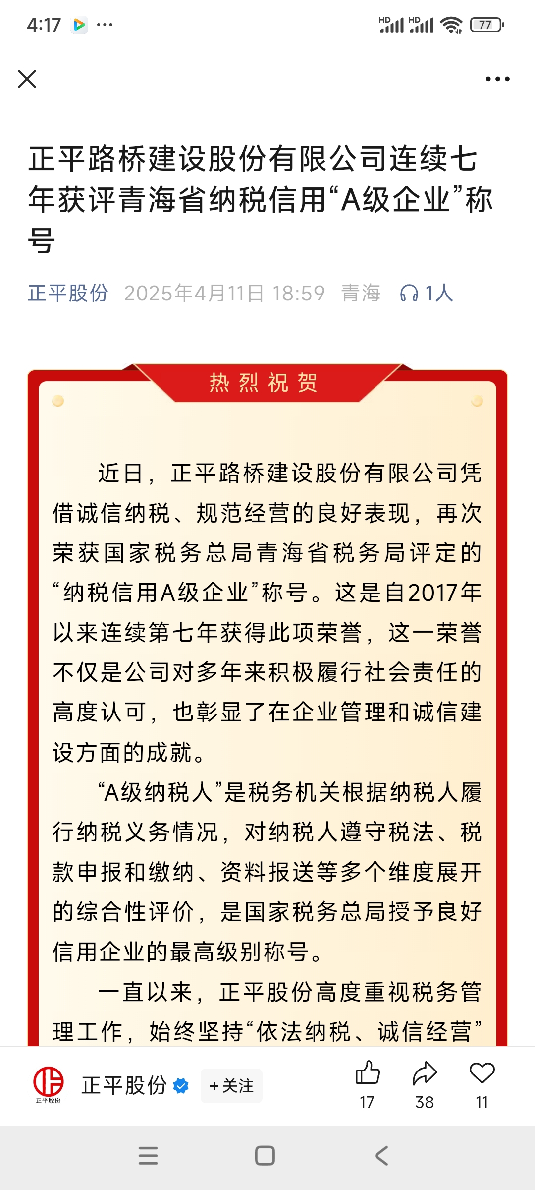 $*ST正平(SH603843)$ 青海A级信用企业,纳税大户,省里力挺,未来可期!