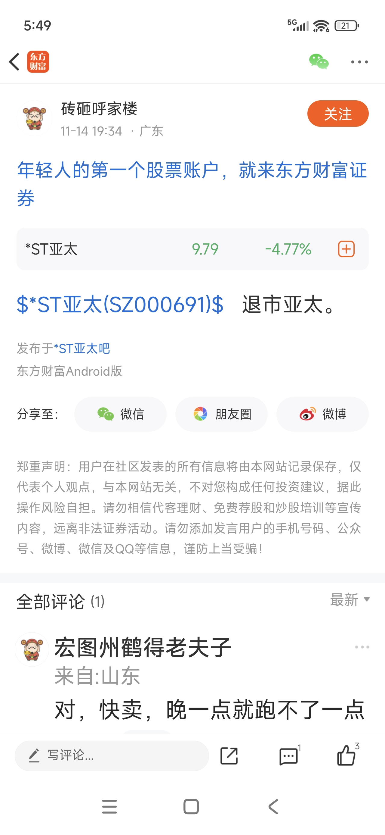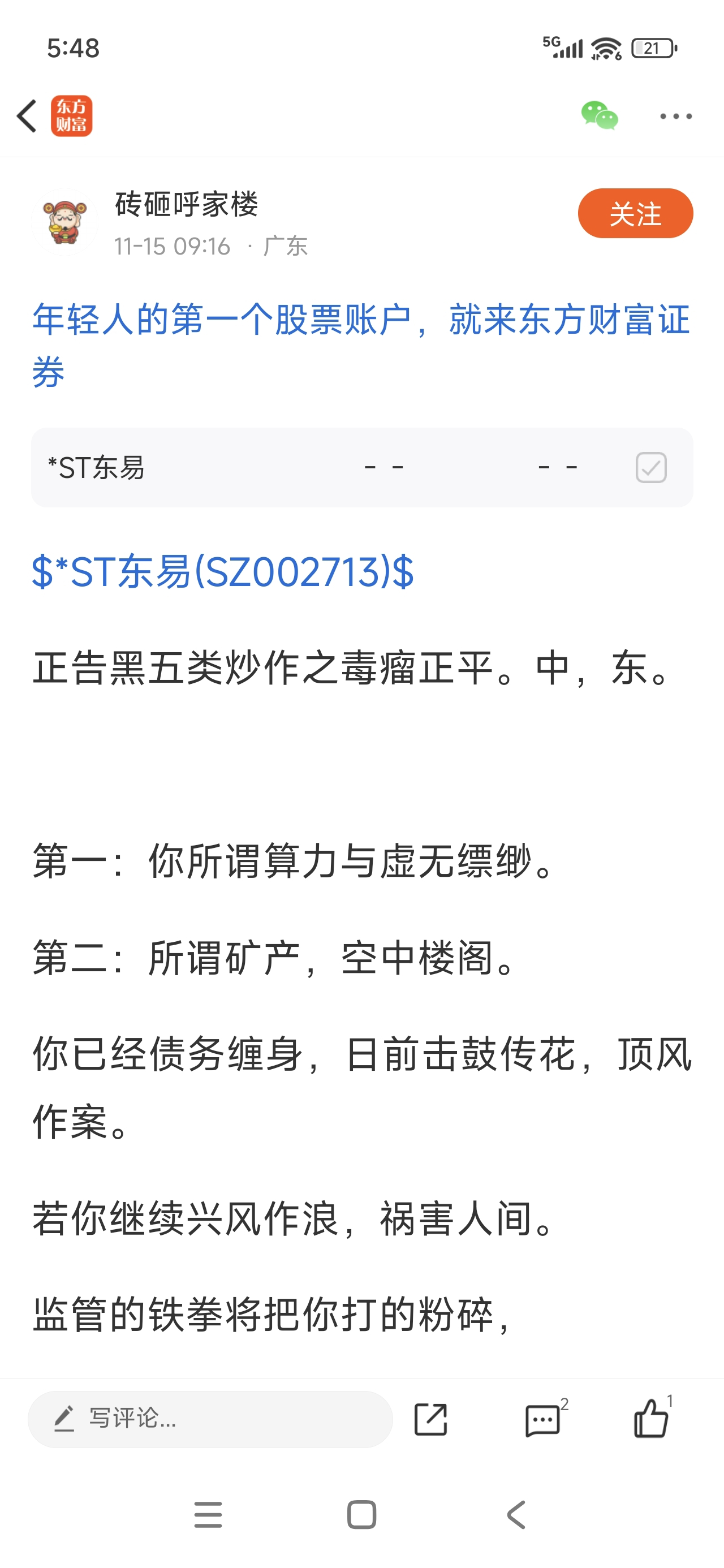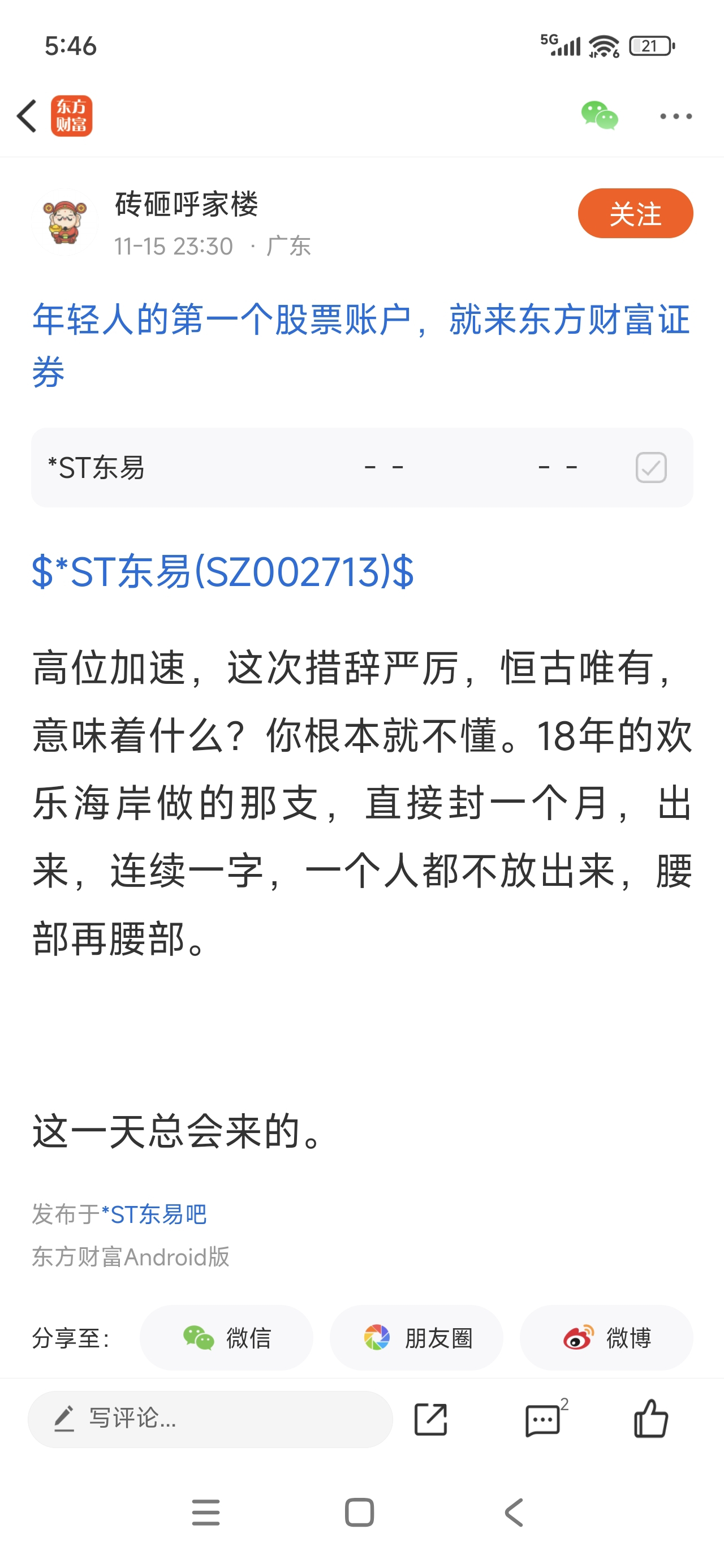 温馨提示: 1.根据《证券法》规定,禁止编造、传播虚假信息或者误导性信息,扰乱证券市场;2.用户在本社区发表的所有资料、言论等仅代表个人观点,与本网站立场无关,不对您构成任何投资建议。用户应基于自己的独立判断,自行决定证券投资并承担相应风险。《东方财富社区管理规定》