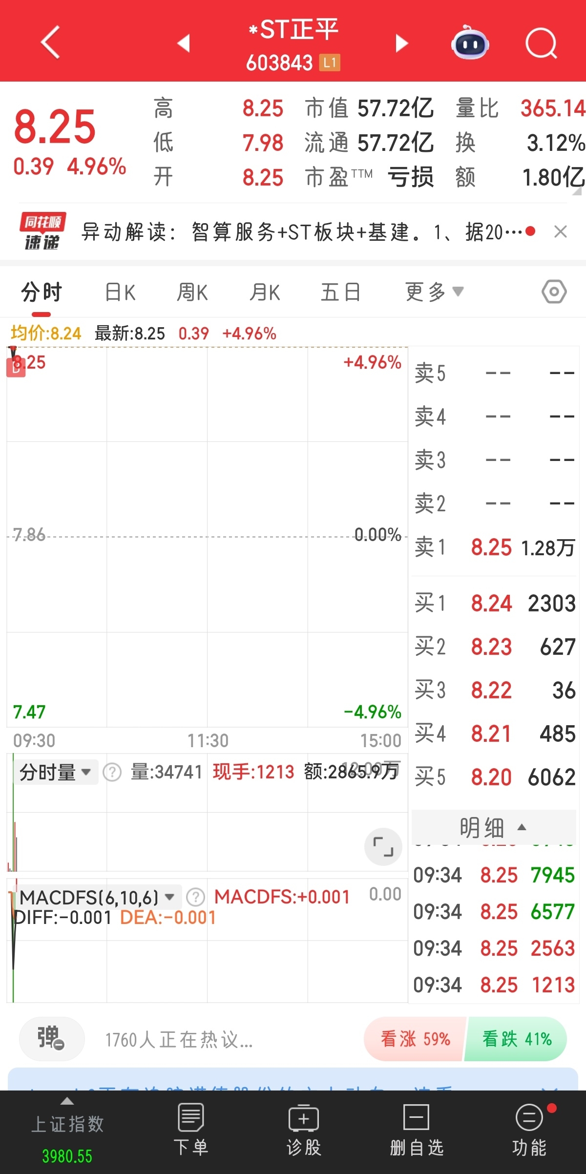 $*ST正平(SH603843)$ 感谢主力给机会,平头哥终于奶了一大口。
