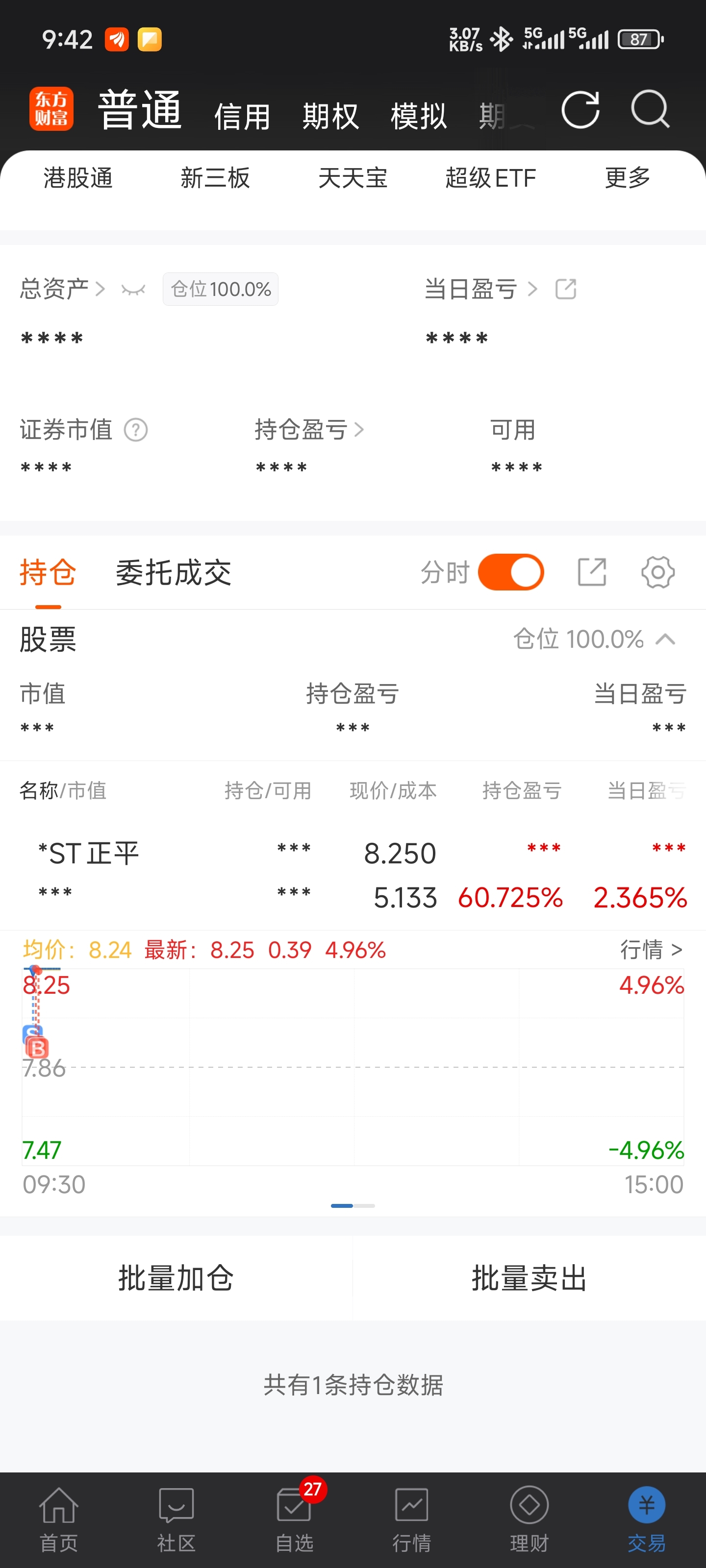 $*ST正平(SH603843)$ 自动卖出了,还好我手快买了回来