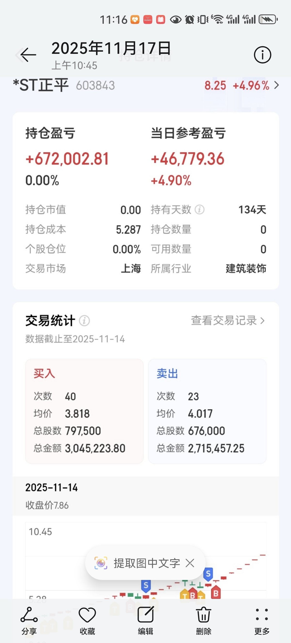 $*ST正平(SH603843)$ 感谢正平,感谢这四个月的陪伴与坚持,最大的收获203%,留下的兄弟发财!!!