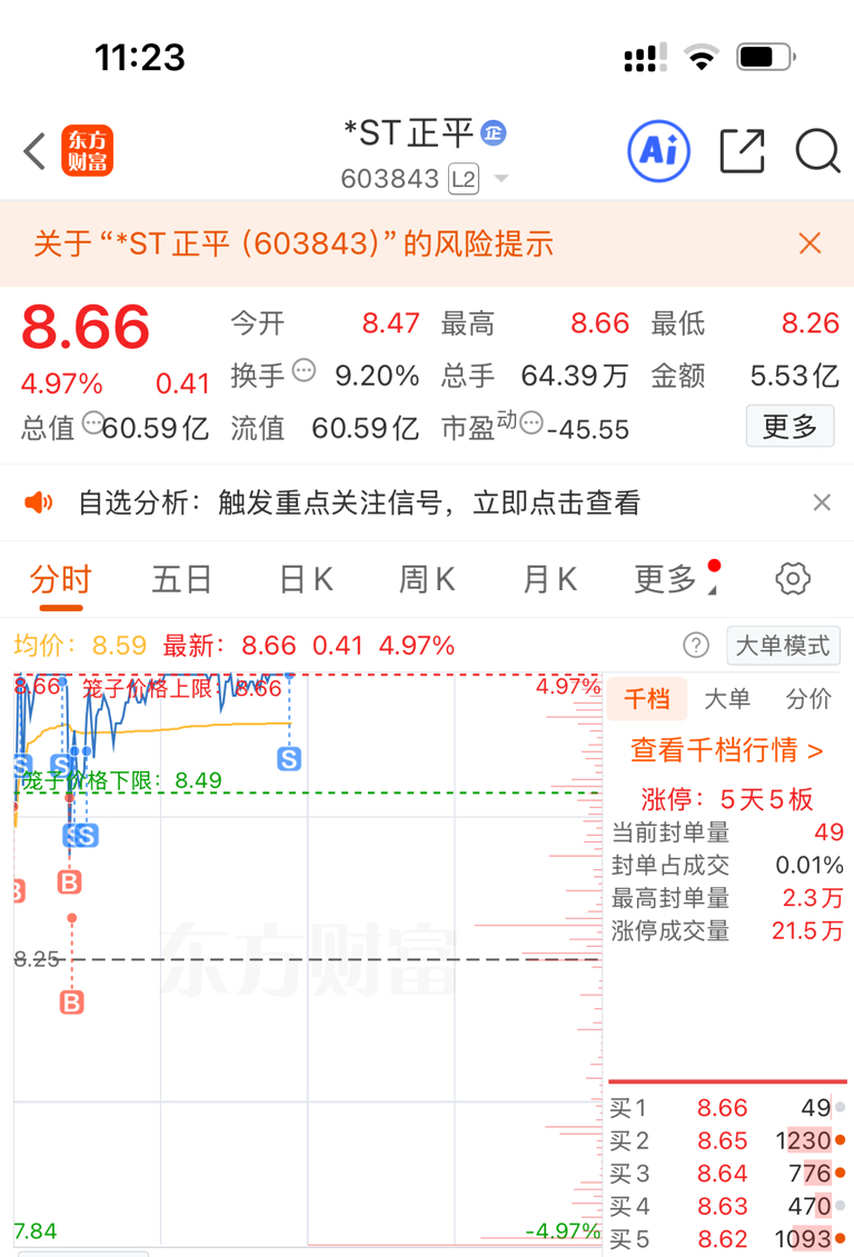 $*ST正平(SH603843)$ 下来就B!上去就S!