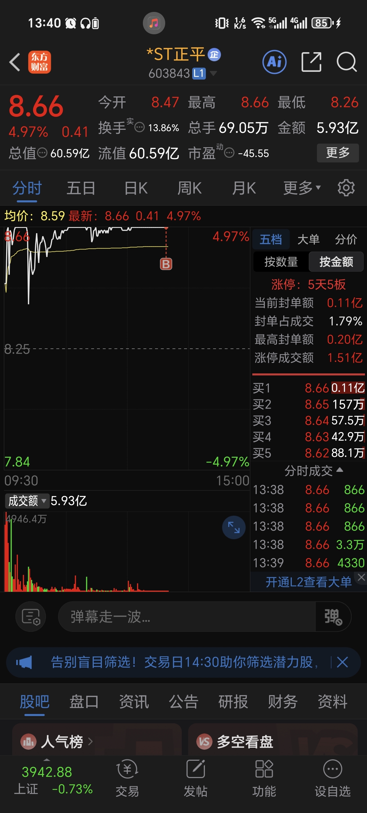 $*ST正平(SH603843)$ 还好兔子早挂几分钟进去了,还想少点赚个手续费,后面一想平头哥让我们赚了这么多,必须顶板支持,家人们下周再见了