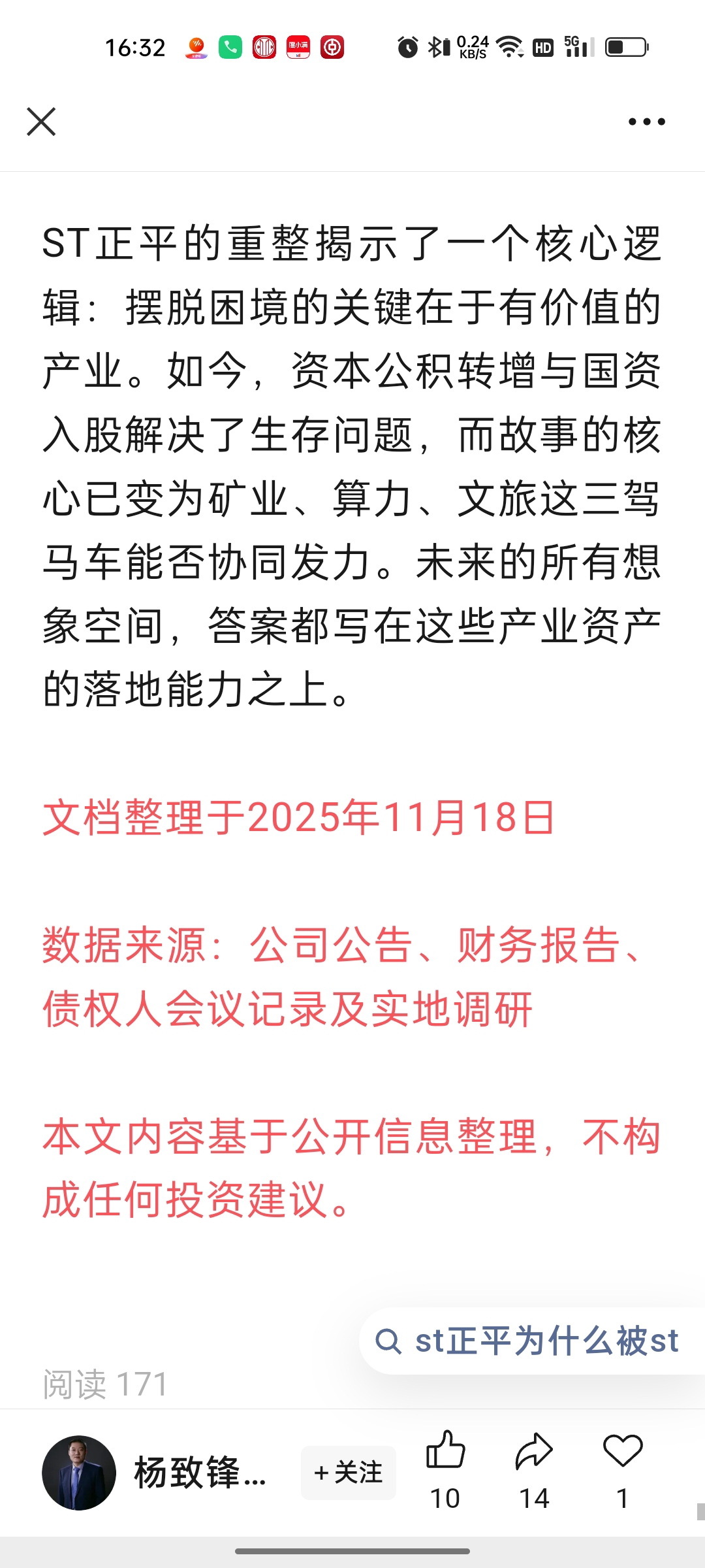 $*ST正平(SH603843)$ 终究还是会引入战投重整,重整就会给投资公司转增股,所以小心小心哈