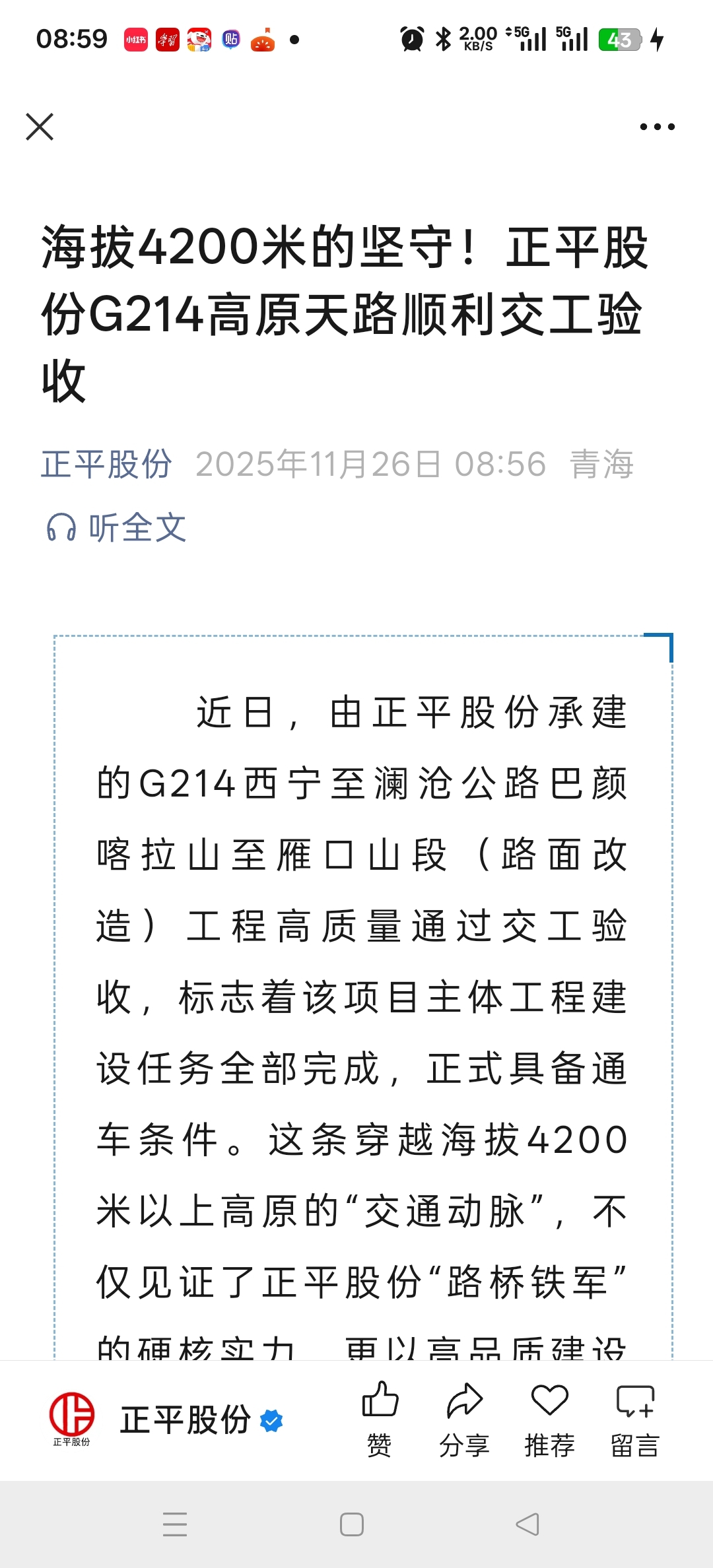 又被删除了,我是看完了,155公里高原高速公路-30-60℃的极端气候验收,这笔收入会是多少,试问哪个公司有这个技术实力,不禁让我想起去雅下水电大显身手。