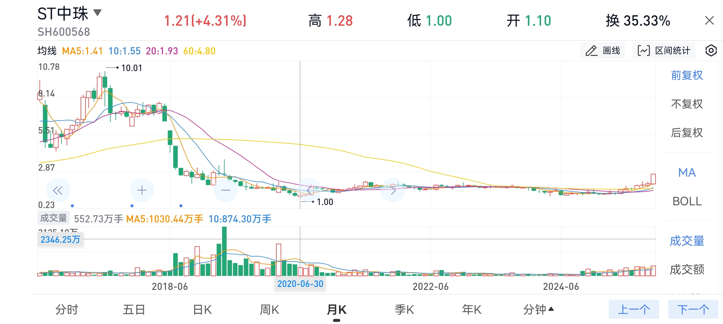 $*ST正平(SH603843)$ 中珠底部横盘5年,近期步步高6.3亿入驻成第一大股东!横有多长竖就有多,正平我是满仓前几天彩票中了10万现在又满仓中珠