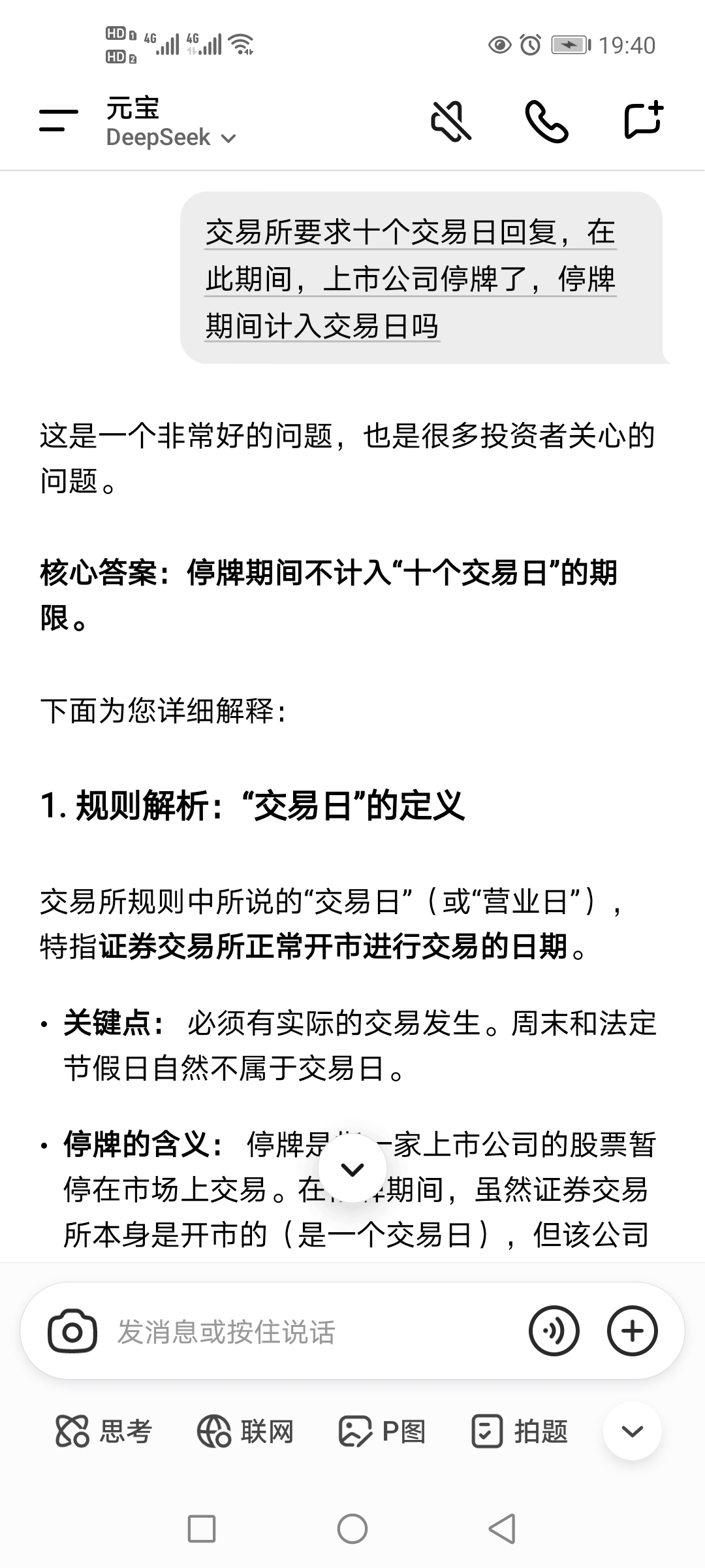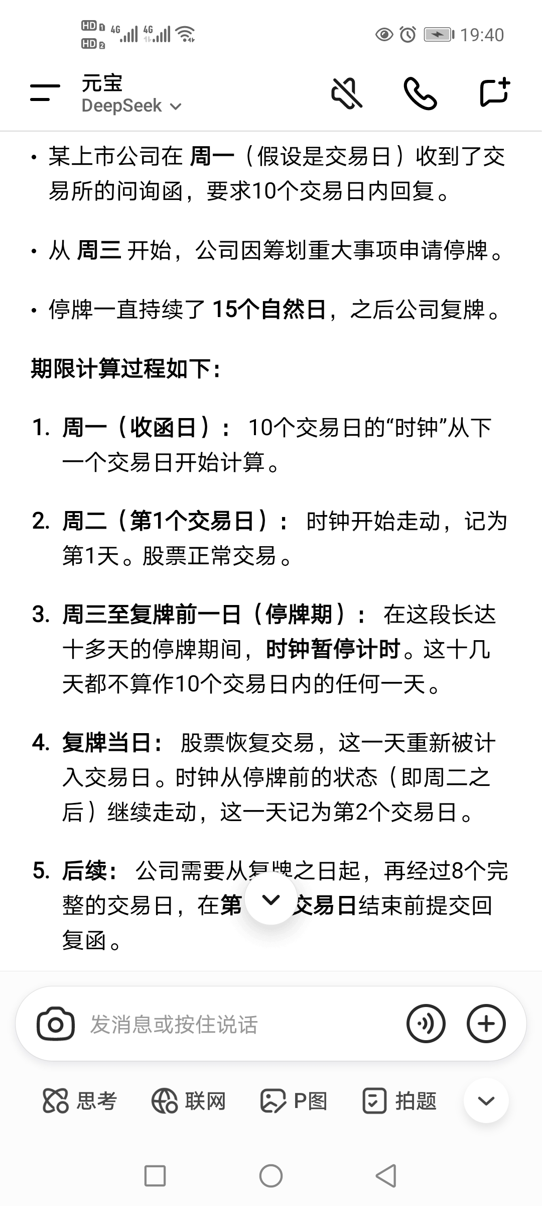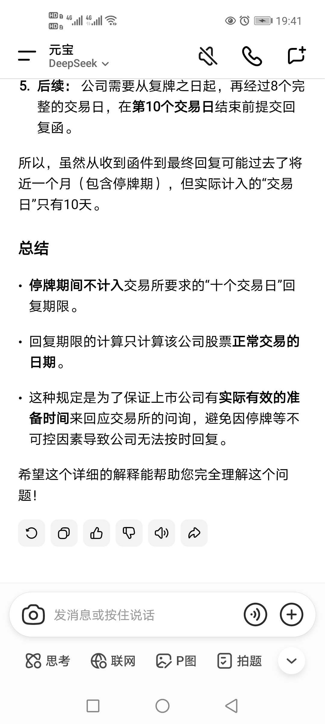 交易所要求十个交易日回复,这十个交易日,不包括停牌期间的时间的。