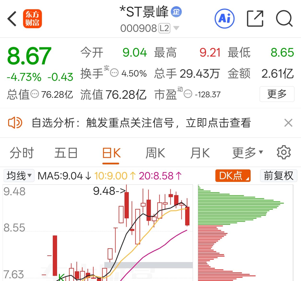 也不要太乐观,前有停牌影响主力操作,后有70 亿容易遇劫,小心走成景峰这样。正平在同股价时的市值大概是景峰×80%!
