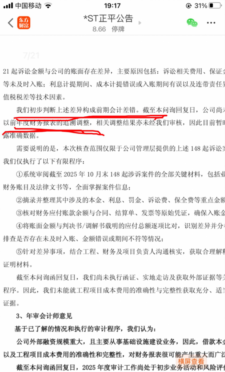 $*ST正平(SH603843)$ 重点来了 !!!字太多 都别看了 ,我来给大家画重点。重点是:前面会计存在差错导致非标,后续有望调整。再加上已经申请重整,基本已经安全落地。点赞吧
