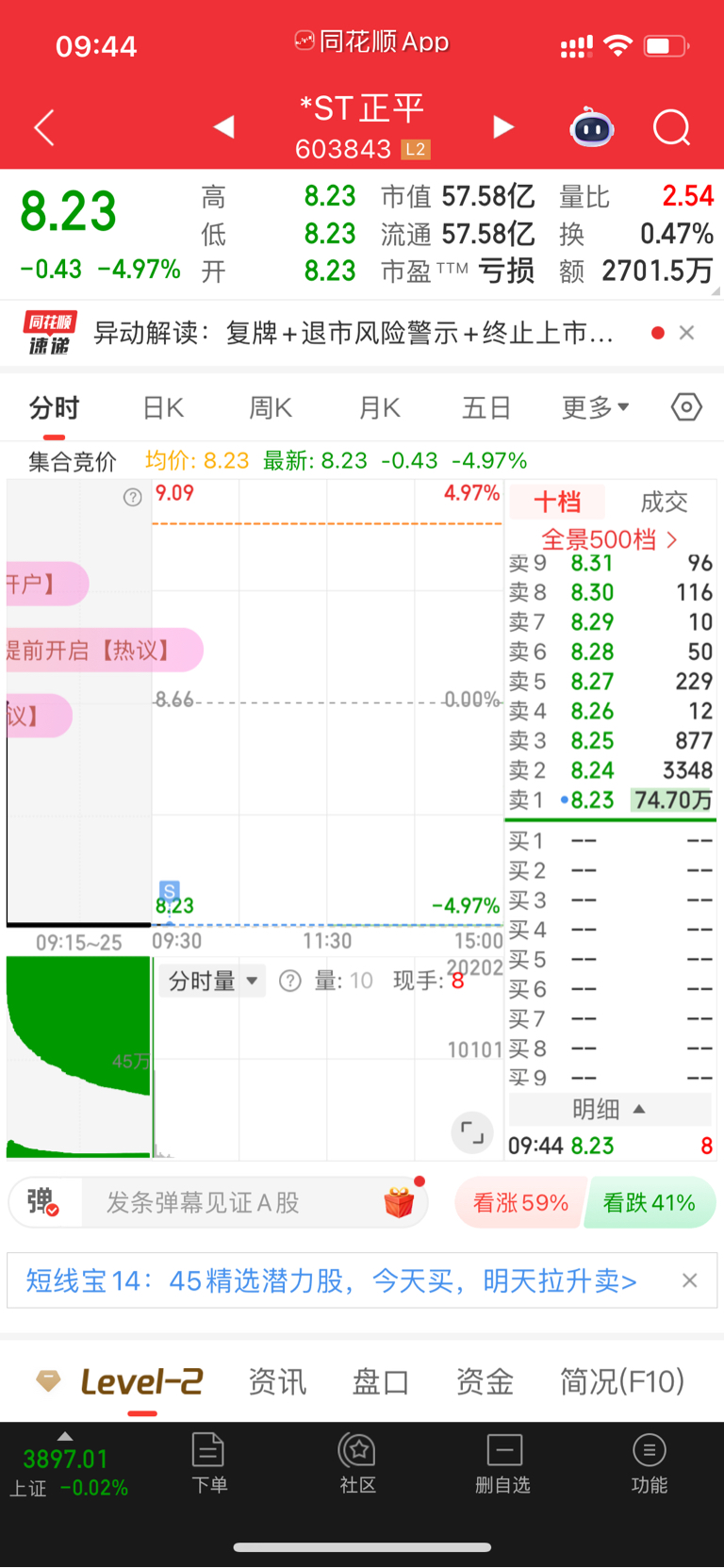 $*ST正平(SH603843)$ 出来了,等企稳在进了
