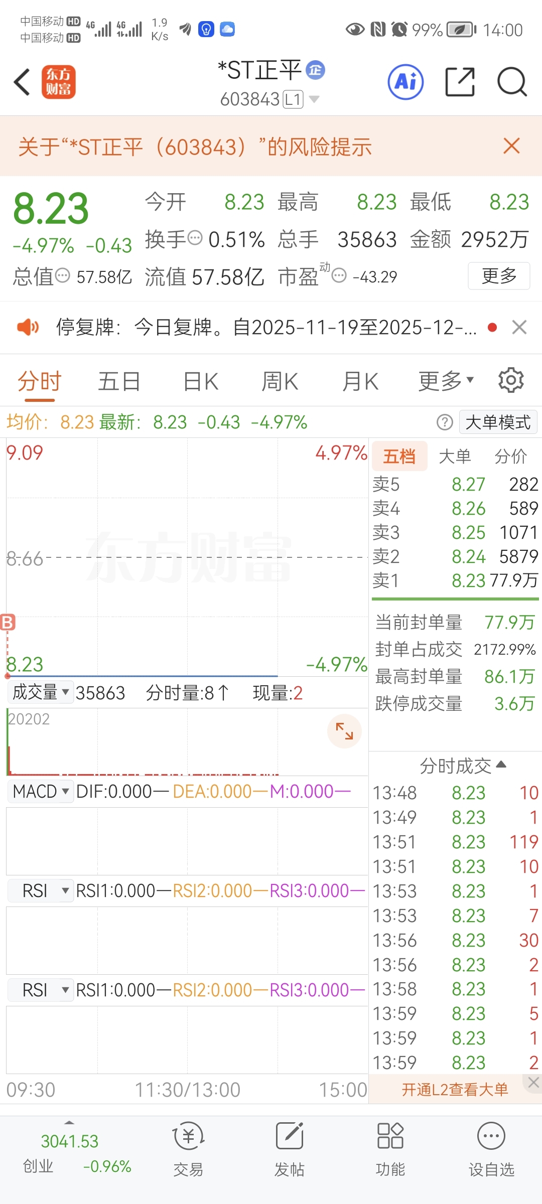 $*ST正平(SH603843)$ 快则今日公告批准受理预重整,慢则周五前受理,南昌银都之前已和正平免息达成和解,现申请重整,一切都是安排好的,今天的主力恶意引导情绪杀,最终会后面几天伴随消息推进在撤单中一口被主力吃掉,形成反转,相信青海西宁中级法院会学习北京海淀对ST东园第二天批准的神速
