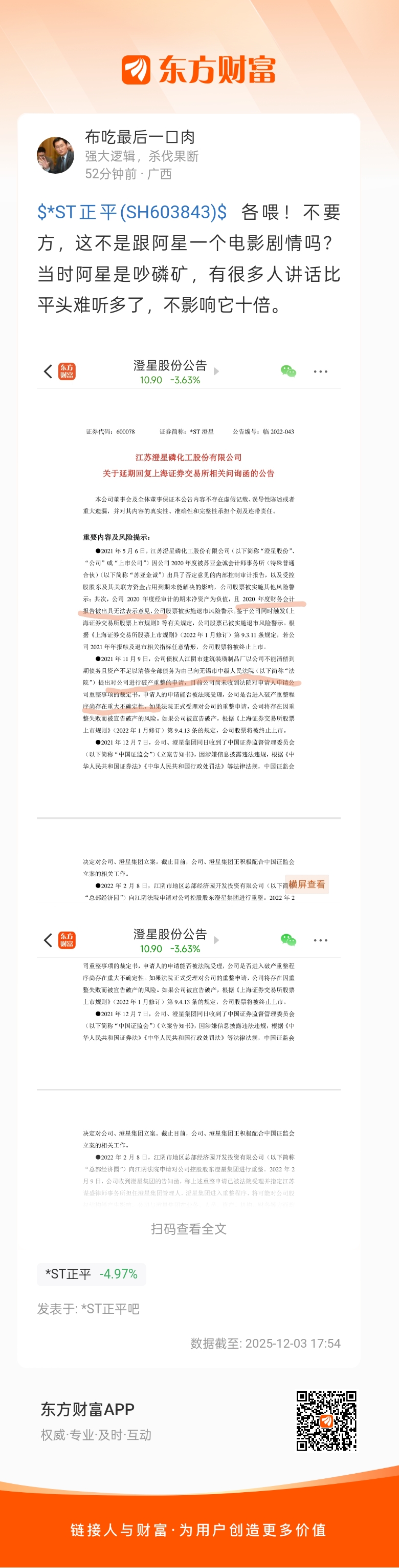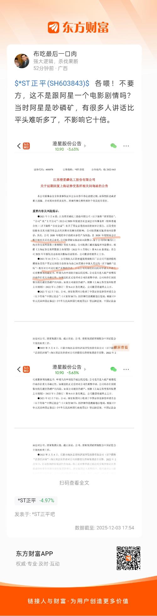 温馨提示: 1.根据《证券法》规定,禁止编造、传播虚假信息或者误导性信息,扰乱证券市场;2.用户在本社区发表的所有资料、言论等仅代表个人观点,与本网站立场无关,不对您构成任何投资建议。用户应基于自己的独立判断,自行决定证券投资并承担相应风险。《东方财富社区管理规定》