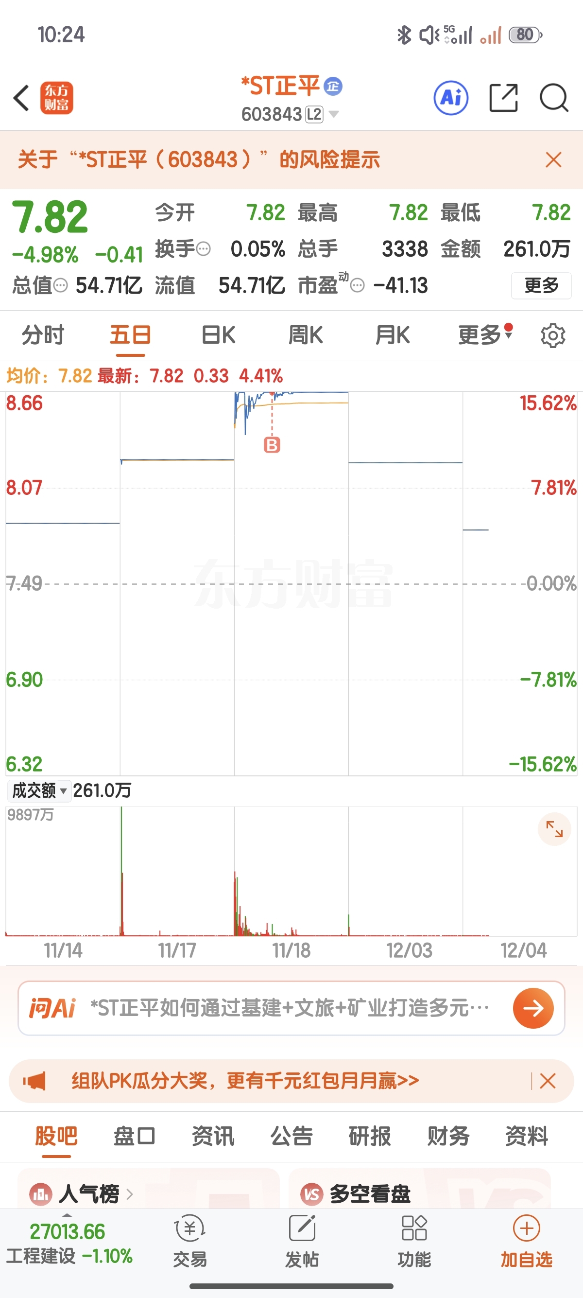 $*ST正平(SH603843)$ 真惨,看这样子,我得亏一半才能出来