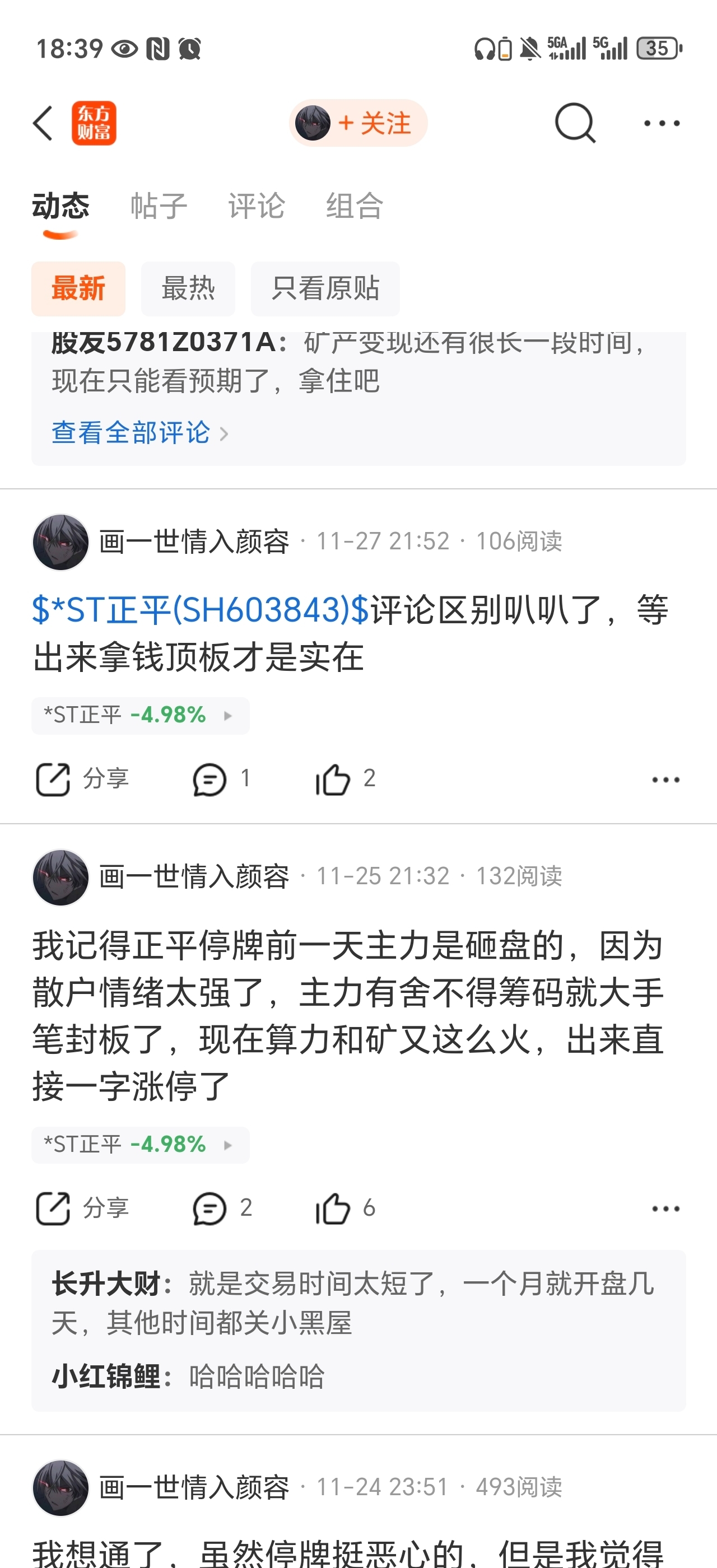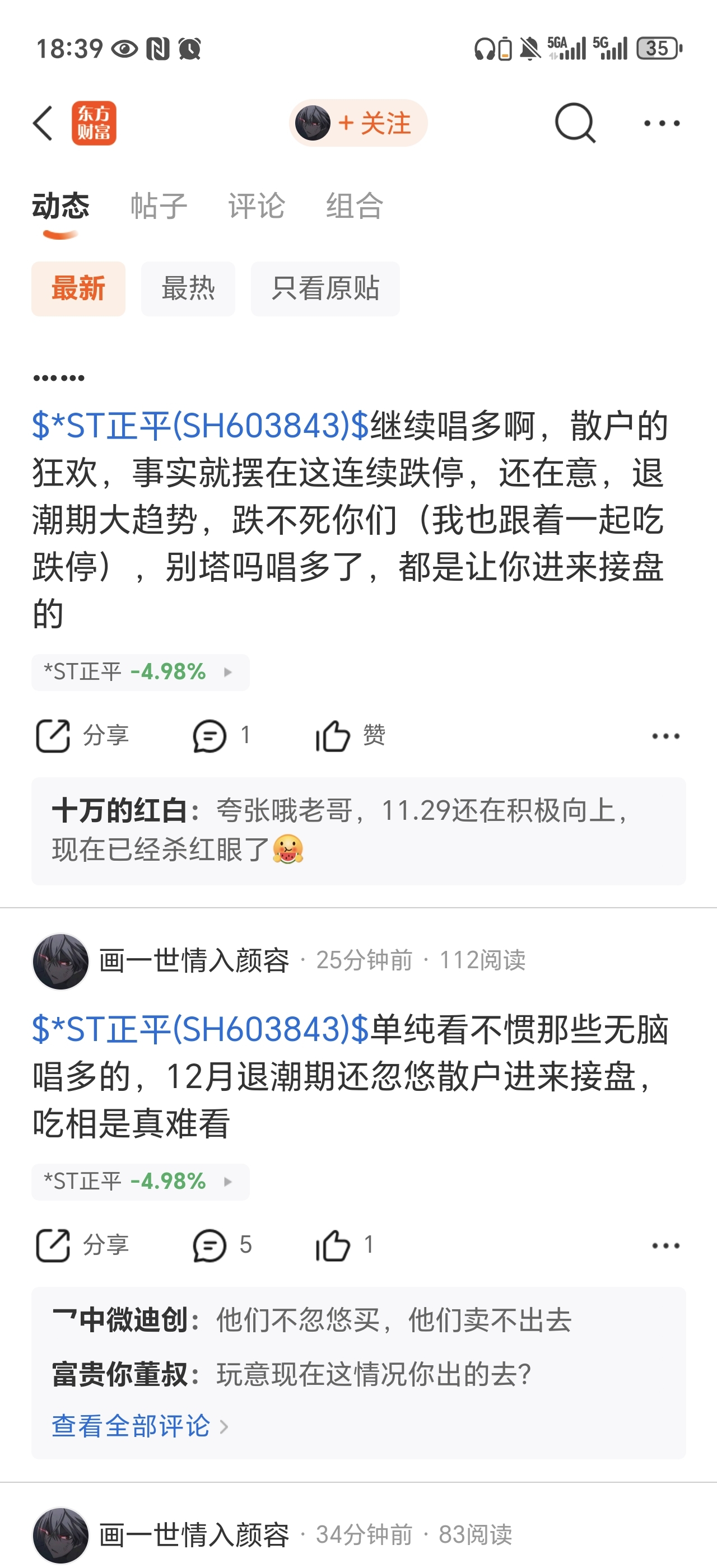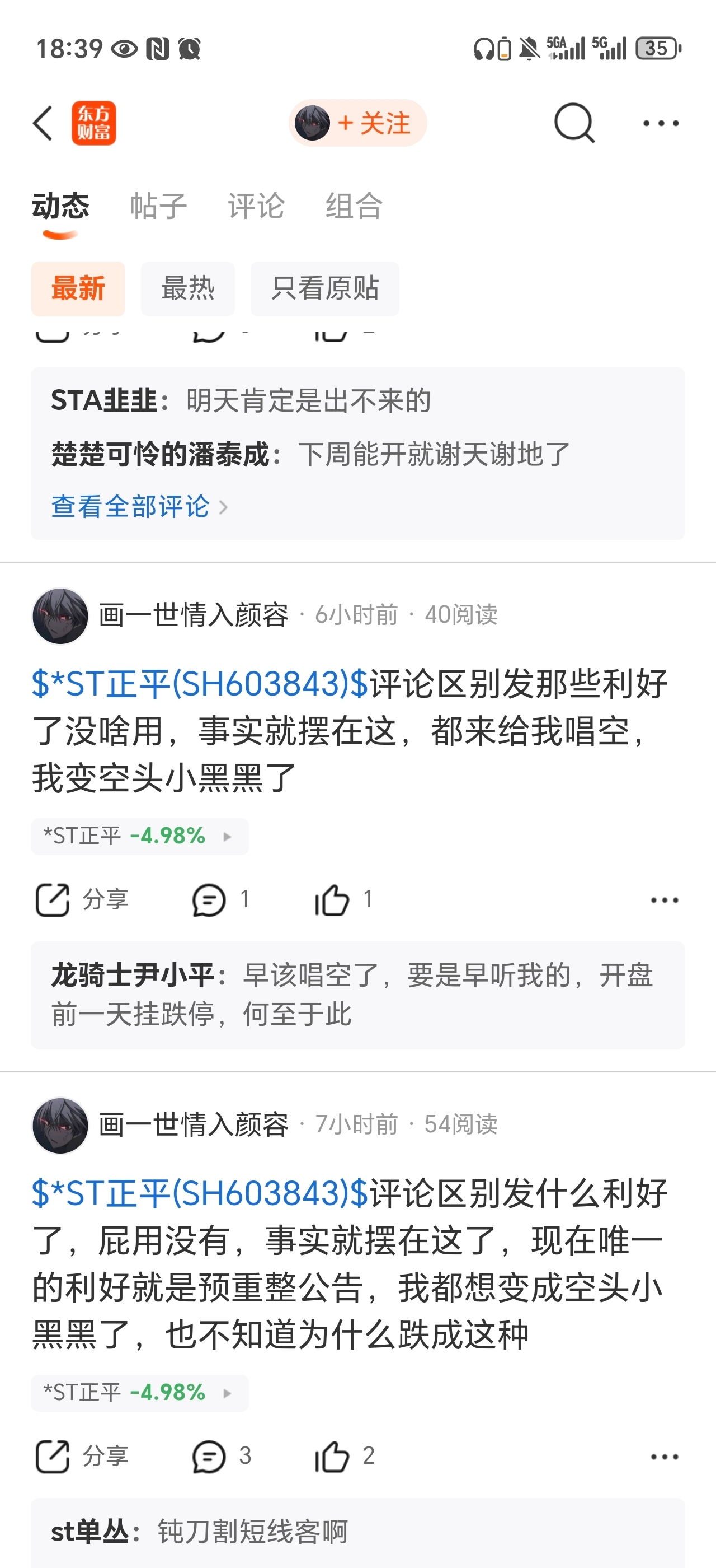 $*ST正平(SH603843)$ 现在知道那么多唱空的空哪来的了吧。从追涨打板后开始拼命唱多找利好,再到复盘被埋后无能狂怒。