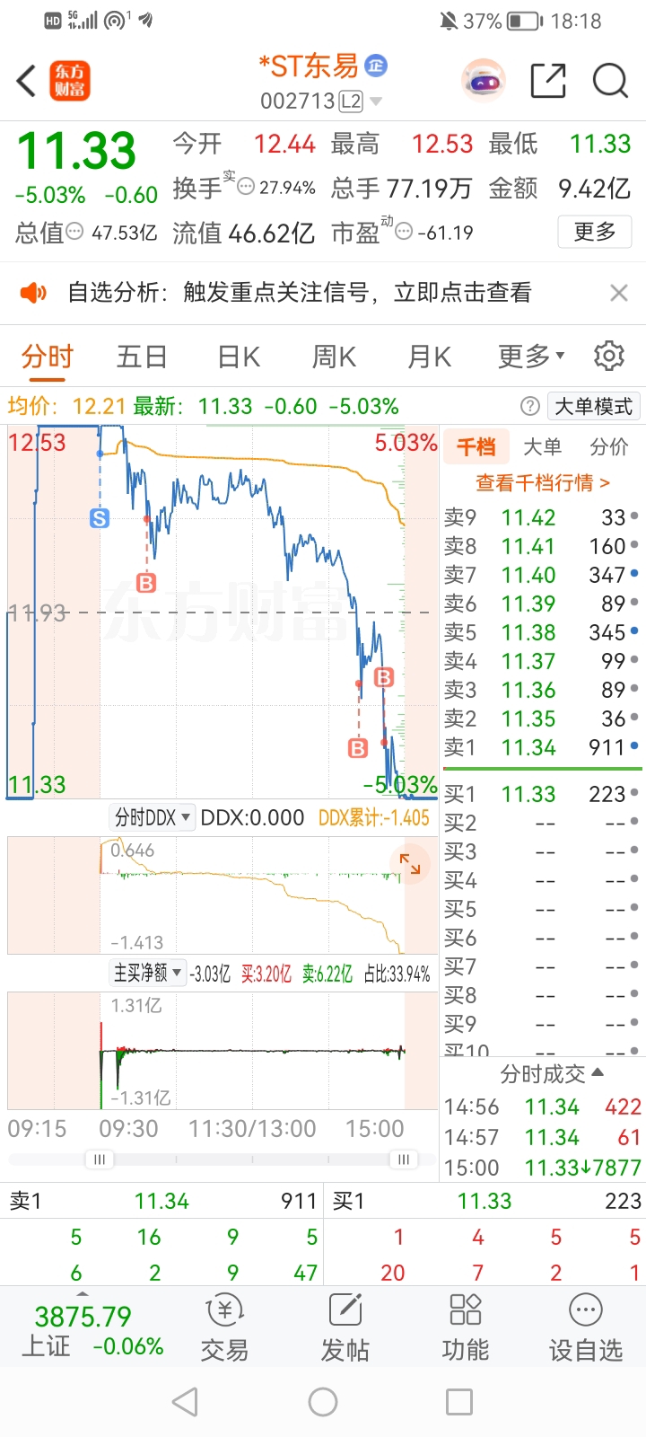 在东易吃了十个跌停板和一个天地板,吃一堑长一智,正平没有十个跌停都不能抄底!