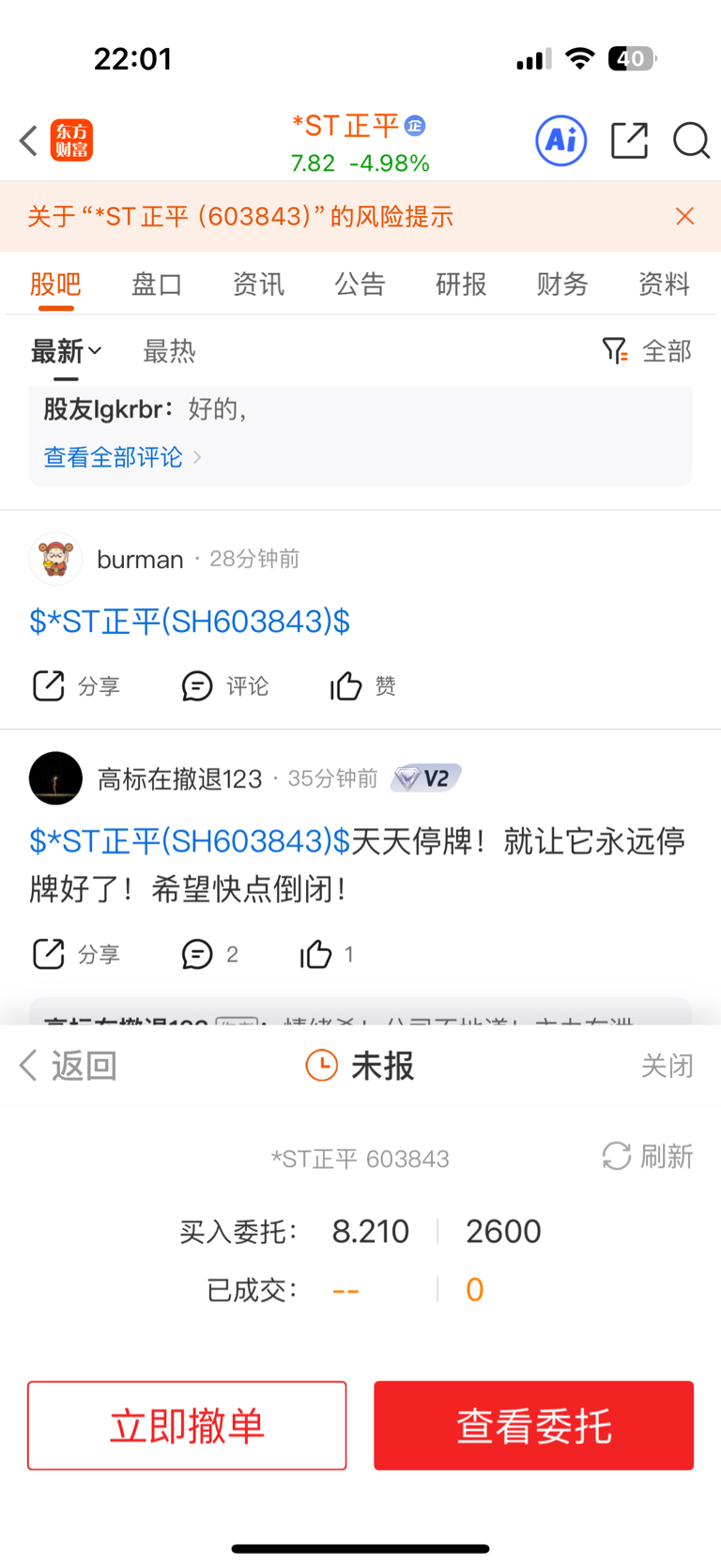 $*ST正平(SH603843)$ 影应大V号召'支持一下'不添堵'基本面又没改变'重整不好吗?而且重整只需要财投'又不需要找产业投资人'重整会很快的'估计都是商量好的,只是走一下程序。只要产业投资人牛,到时候根本买不进,你们慌什么呢?就一点时间而已,这点耐心都没有吗?