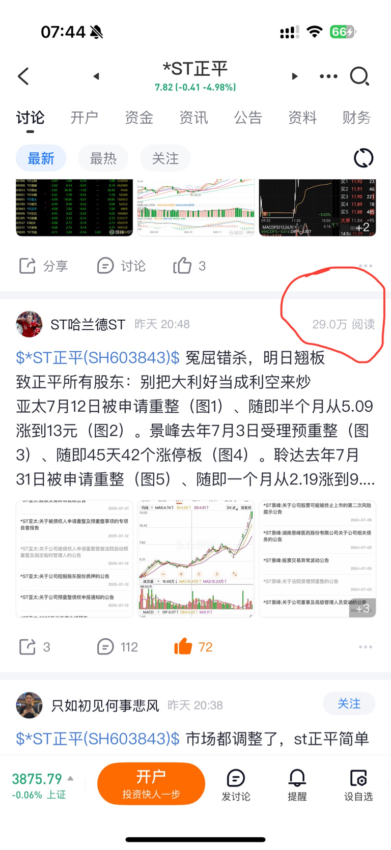 昨天已经29万人阅读我的帖子(看截图1),理解了申请破产重整是大利好,理解了正平明年花一年时间慢慢重整都可以的、不需要今年内完成重整。