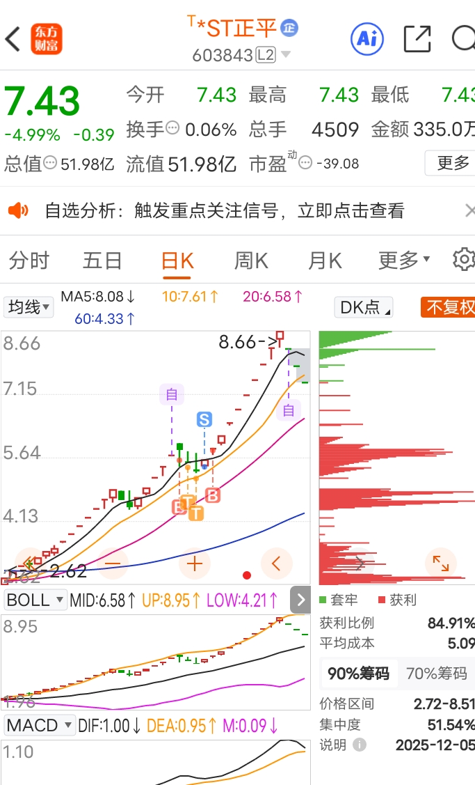 $*ST正平(SH603843)$ 正平股份 在我持仓里 是非卖品