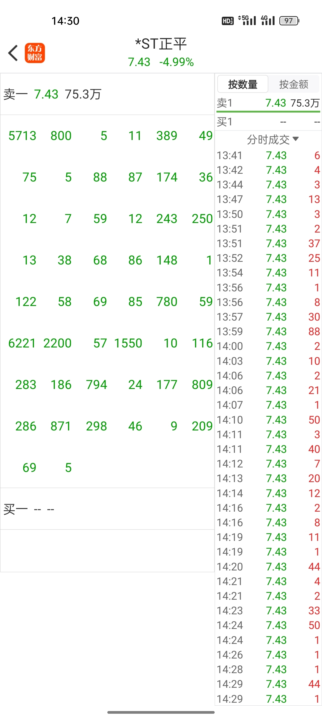 $*ST正平(SH603843)$ 好多封单啊,而且很多大单,一天成交就几百万,下周会放人吗不会是下一个东易吧。那几个大V终于安静的,不唱多了。