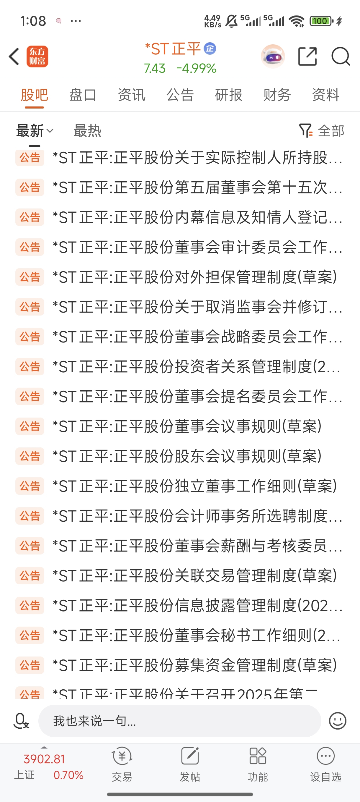 $*ST正平(SH603843)$ 怎么发这么多消息 有没有课代表