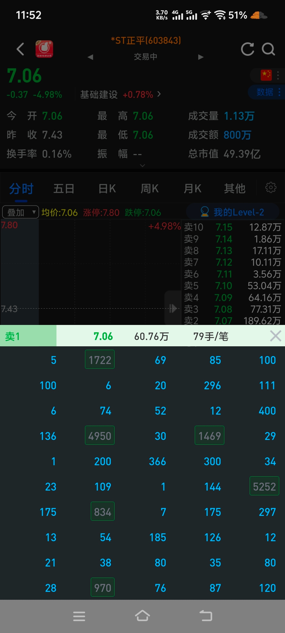 $*ST正平(SH603843)$ 懒得往下翻,没在前面的大伙儿,麻溜点撤单吧,这样还有希望,反正也出不去,不是吗?