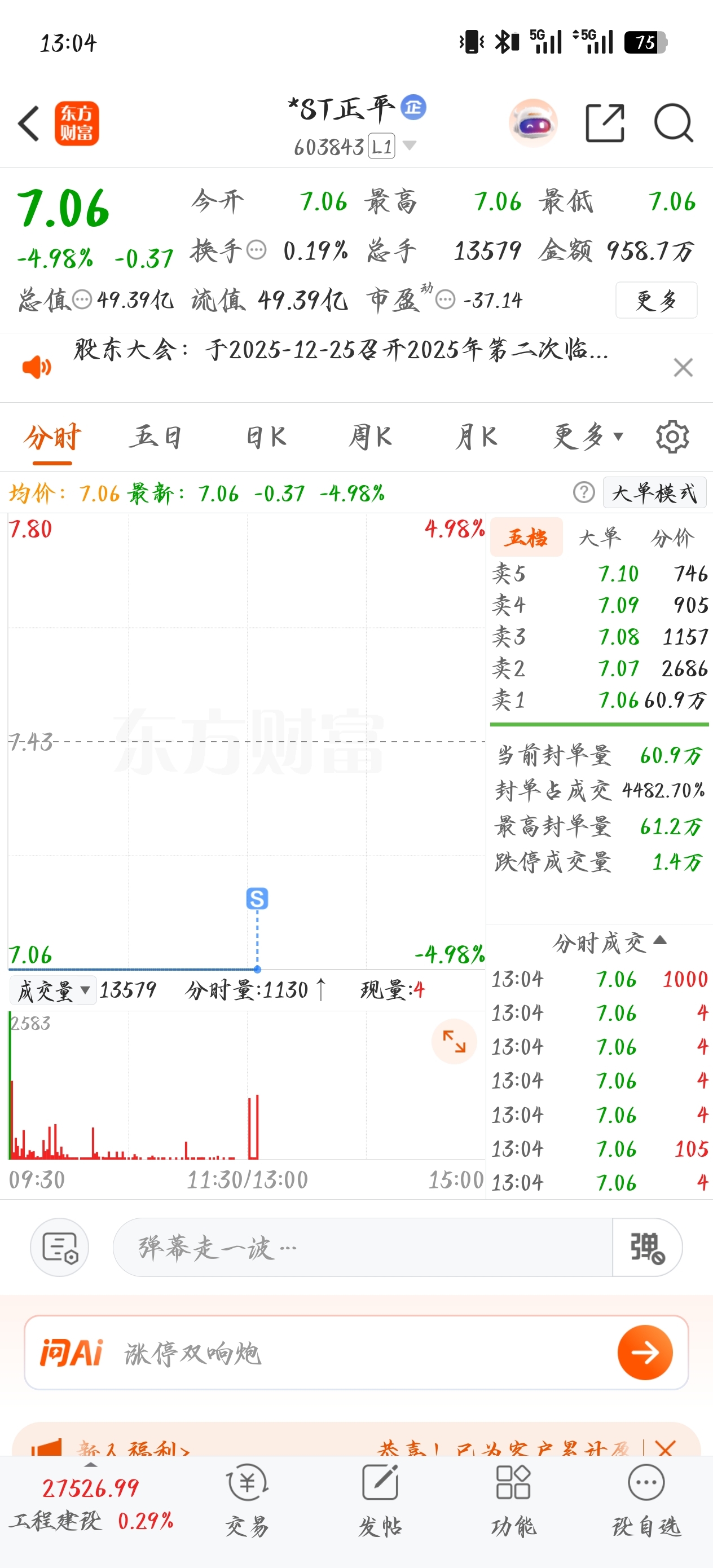 $*ST正平(SH603843)$ 谢谢千手哥救我于水火,真心祝你发财,阖家幸福,身体健康。