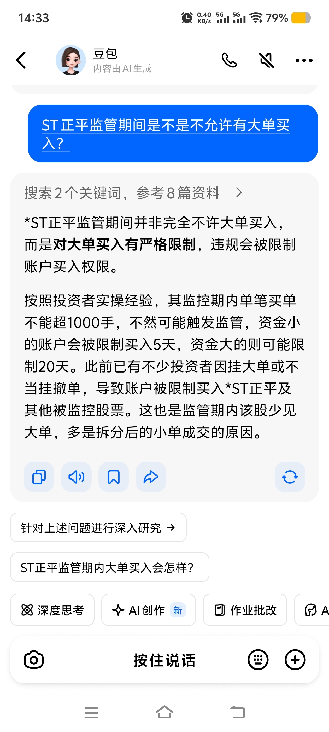 $*ST正平(SH603843)$ 监管期到16号,这中间,不能有大单买入,不然就限制账户交易,正平的老庄就是利用这个机制,使用大单砸跌停,压低股价,然后大资金又抄不了底,恶意砸盘
