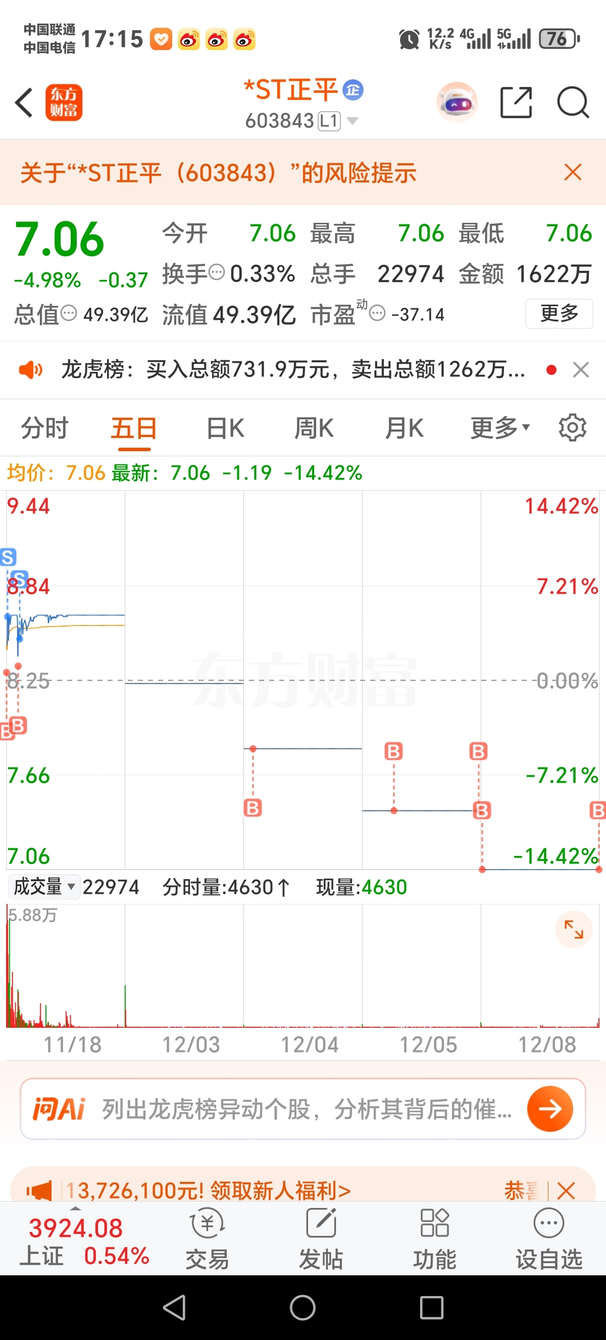 $*ST正平(SH603843)$ 家人们,我尽力了.原来5.8的本这两天加到6.06本了