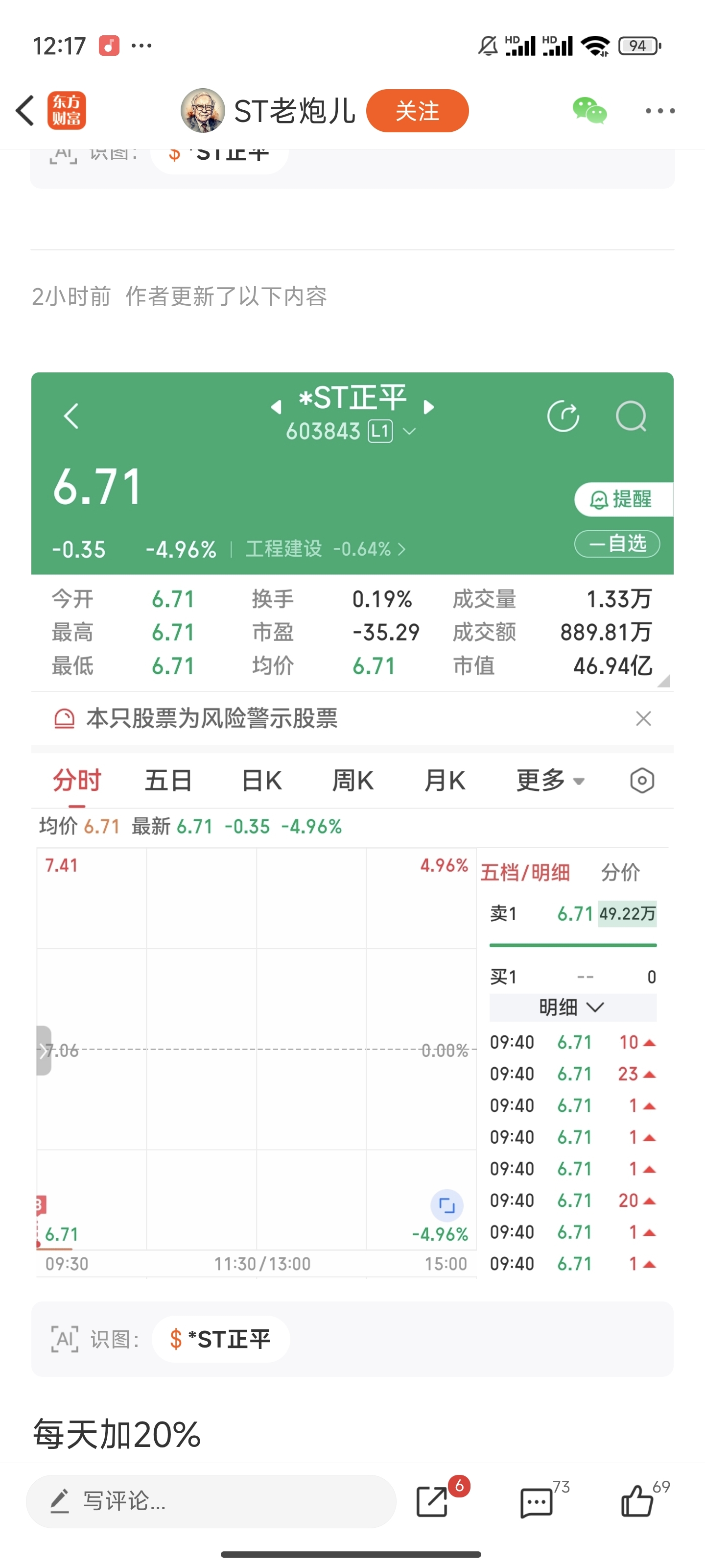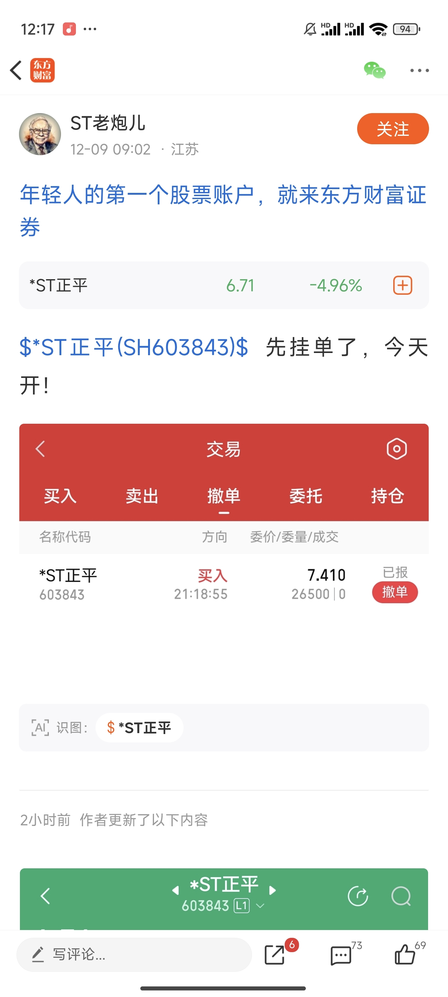 这人每天喊加仓,然后自己P图一个B点。害不知所以的小散跟风买进吃跌停,真有意思。
